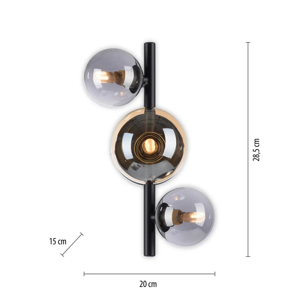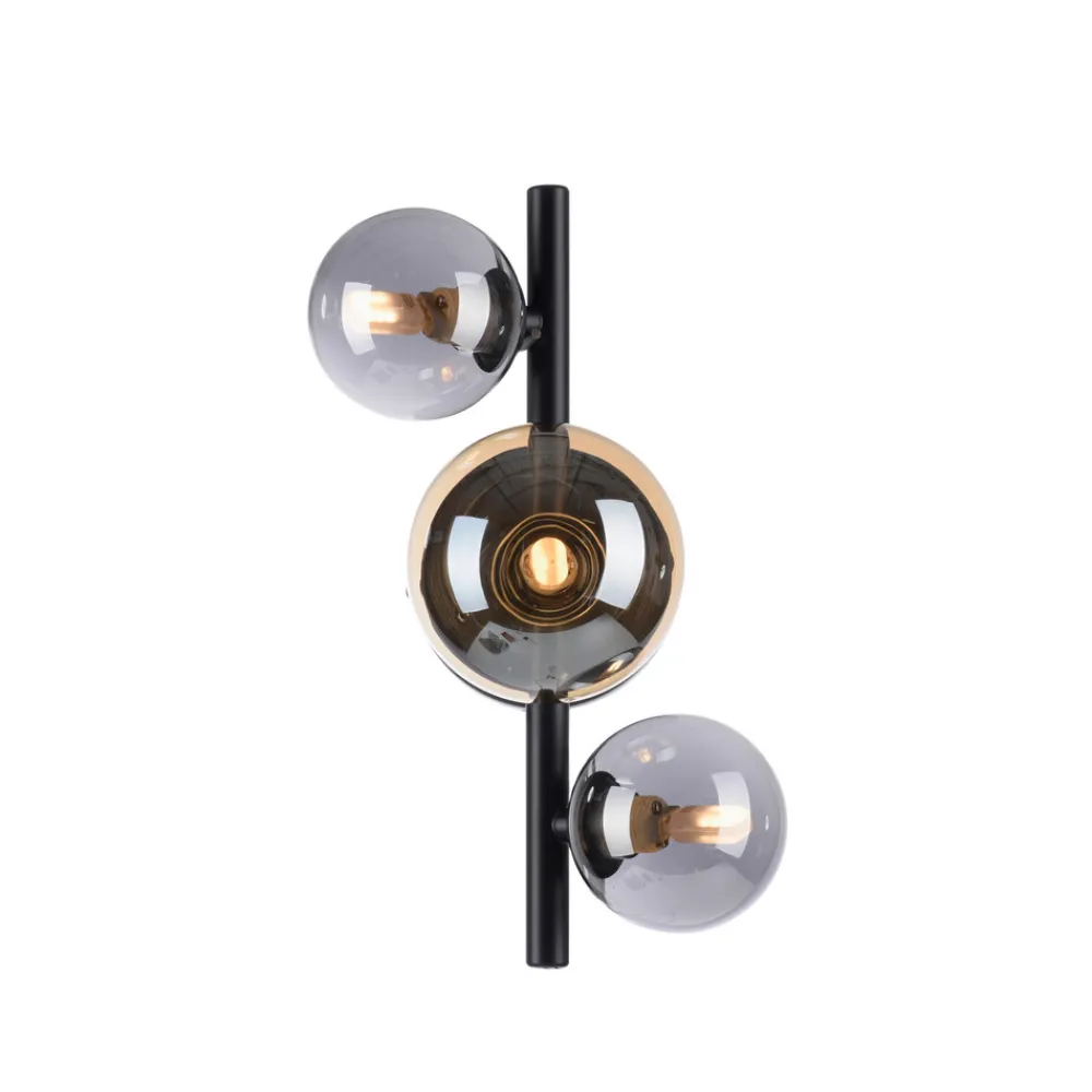 Utskiftbare LED-pærer medfølger: Popsicle-vegglampe med lampeskjermer i glass Den vakkert designede, svarte Popsicle-vegglampen med ravfargede og røykgrå lampeskjermer i glass i ulike størrelser gir en dekorativ glød til hjemmet ditt. Den leveres med tre varmhvite G9 LED-pærer, som avgir et vakkert lysspill gjennom lampeskjermene. På denne måten skaper Popsicle en koselig og hjemmekoselig atmosfære.
