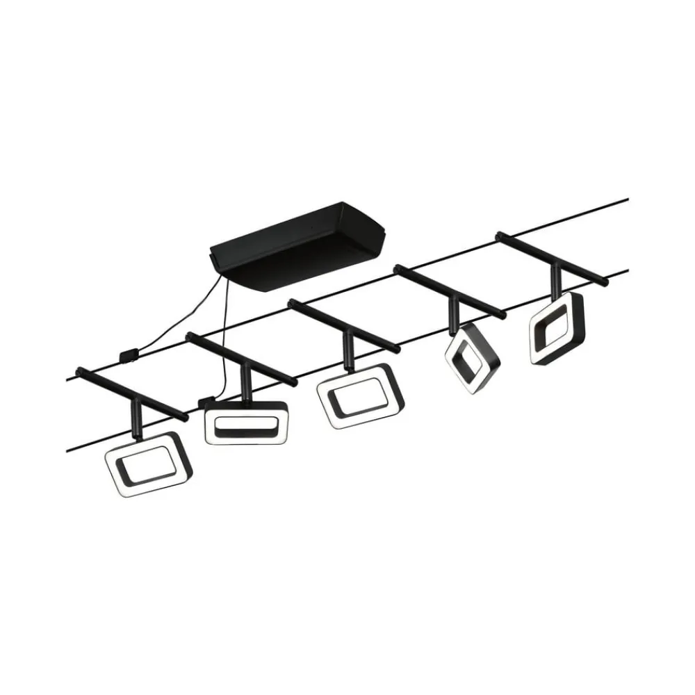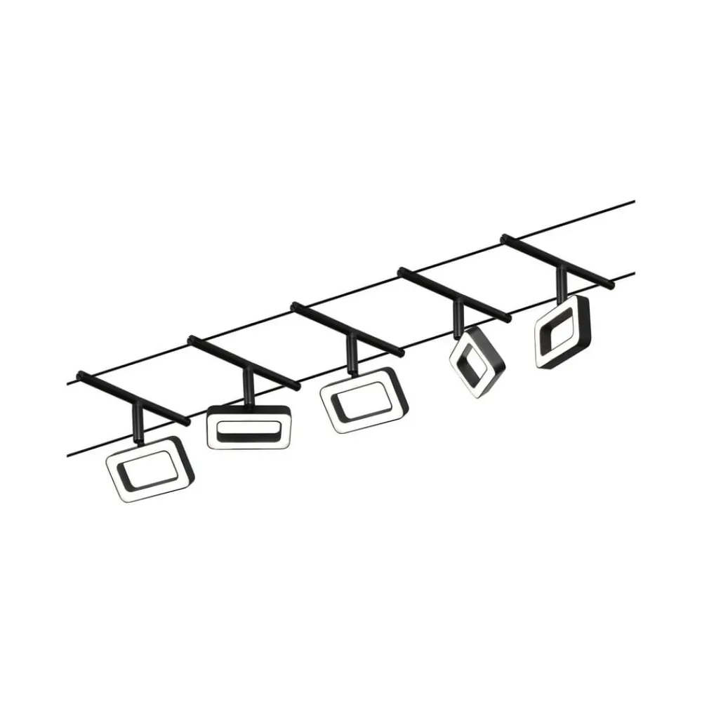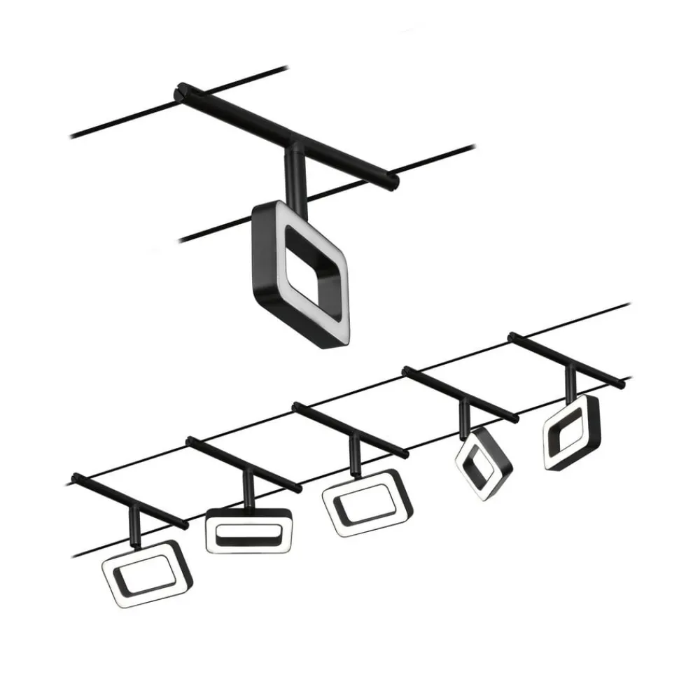 vaiersystem leveres klar for tilkobling som et komplett sett bestående av ledning, transformator og femkantet lys. De individuelle lysene, utformet som rektangulære rammer, kan ikke bare plasseres hvor som helst på kabelen, men kan også roteres og svinges slik at de enkelte lysene kan lyse i forskjellige retninger. Dette gjør et vaiersystem til det ideelle lyset for lange korridorer eller skjeve rom. vaiersystem kan monteres i taket, men også på skråtak eller på vegg. Den er utstyrt med energieffektive, varmhvite LED-er, noe som gjør den til en moderne og energibesparende lyskilde for grunnbelysning rombelysning.