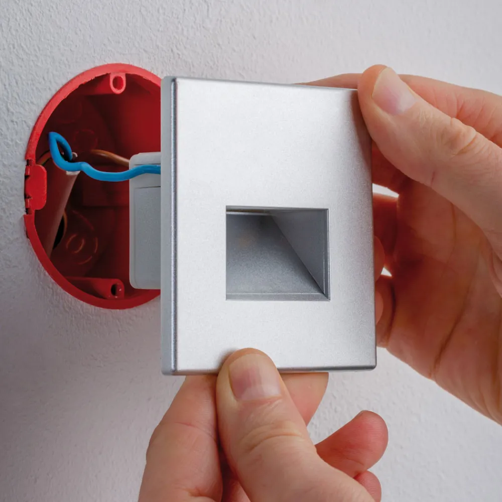 De innebygde LED-lysene sørger for et varmhvitt lys i rommet og imponerer med lang levetid og energieffektivitet. Lampen monteres i en vanlig installasjonsboks med en diameter på 6 cm.