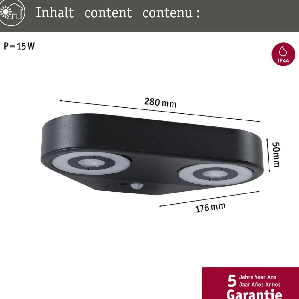 Paulmann LED-vegglampe Silma antrasitt 2 lyskilder IP44 New