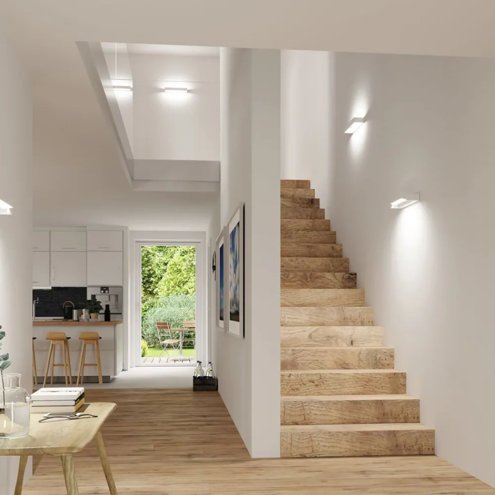 Som speilbelysning på badet, men også som en atmosfærisk lyskilde i andre rom som stue eller gang, LED-vegglampen Lucille skjærer en fin figur og gir et lett behagelig varmhvitt lys. På grunn av svingningen av lyselementet kan lysinnstrålingen varieres – direkte, indirekte eller jevnt opp og ned – lyselementet kan justeres igjen og igjen etter ønske for å skape interessante lyseffekter eller for å lyse speilet perfekt. Lampen kan dimmes i tre trinn ved å trykke gjentatte ganger på lysbryteren, noe som gir enda mer fleksibilitet i lysdesign. Minnefunksjonen husker sist valgte lysstyrkeinnstilling og lar lampen lyse med denne lysstyrken neste gang den slås på.