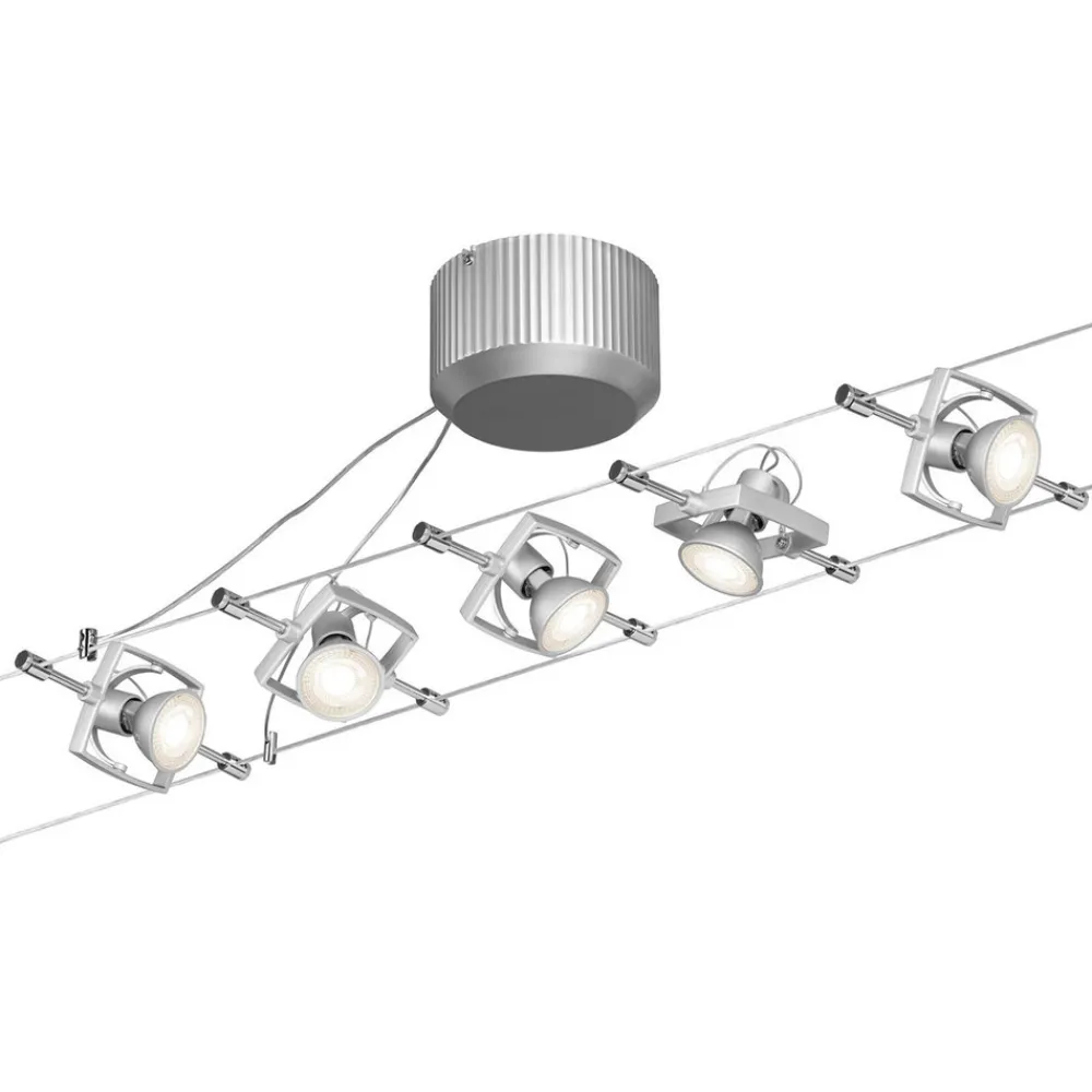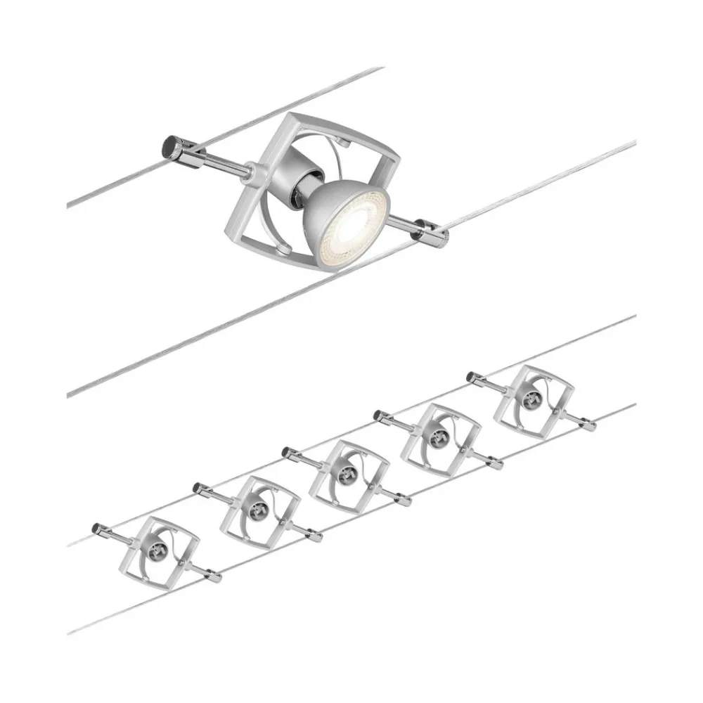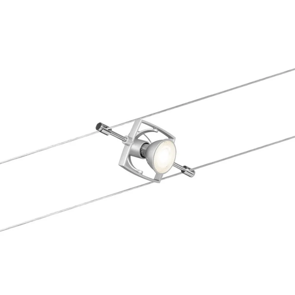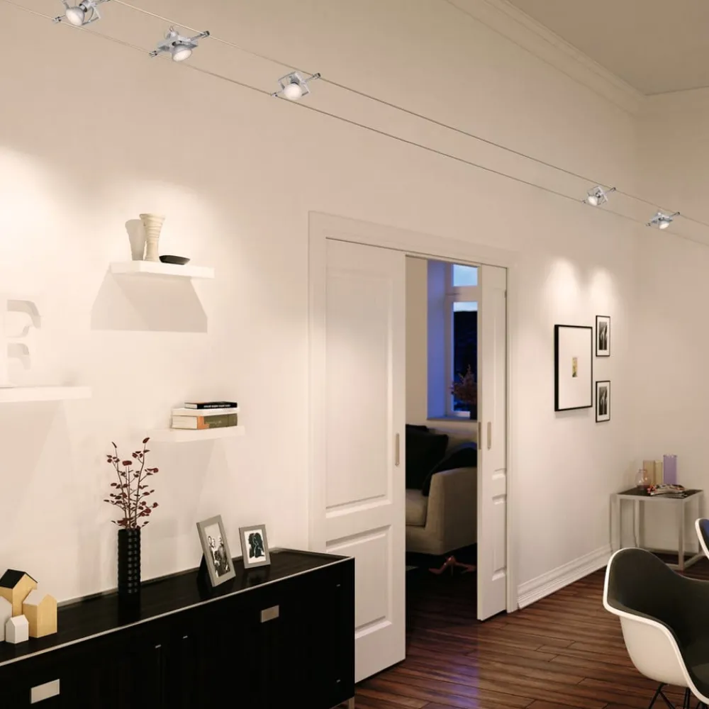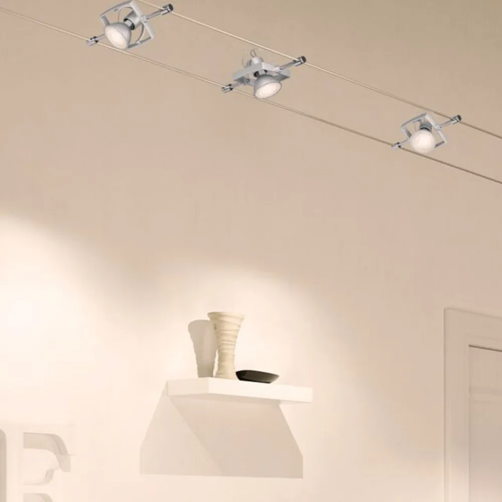 Vaiersystemet er enkelt å montere, og moderne 12 V-teknologi gjør at det er sikrere enn et vanlig 230 V-system. De strømførende vaierne har en systemlengde på 5 m og passer til fem spotter som kan plasseres vilkårlig. Spottene er svingbare og gjør det mulig å lyssette ulike objekter.