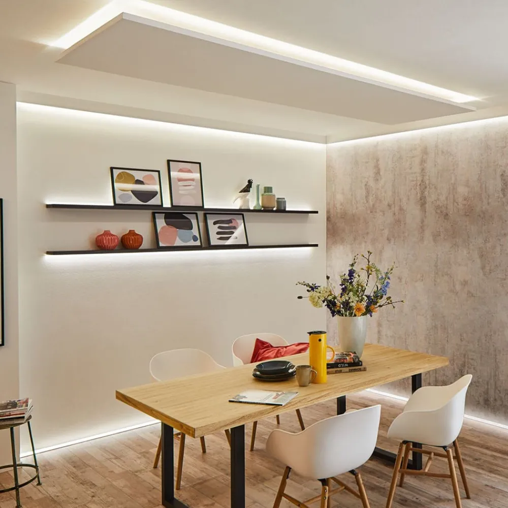 MaxLED 250 Strip extension, Tunable White, egnet for fuktige rom – 30 lysdioder per meter – takket være «Protecting Cover»-belegg med sprutbeskyttelse (IP44); kan brukes i baderom etc. – hver 16,7 cm / 5 lysdioder kan deles – for utvidelse av grunnsettet – enkel tilkobling takket være 5-polet kontaktsystem – med selvklebende tape på baksiden