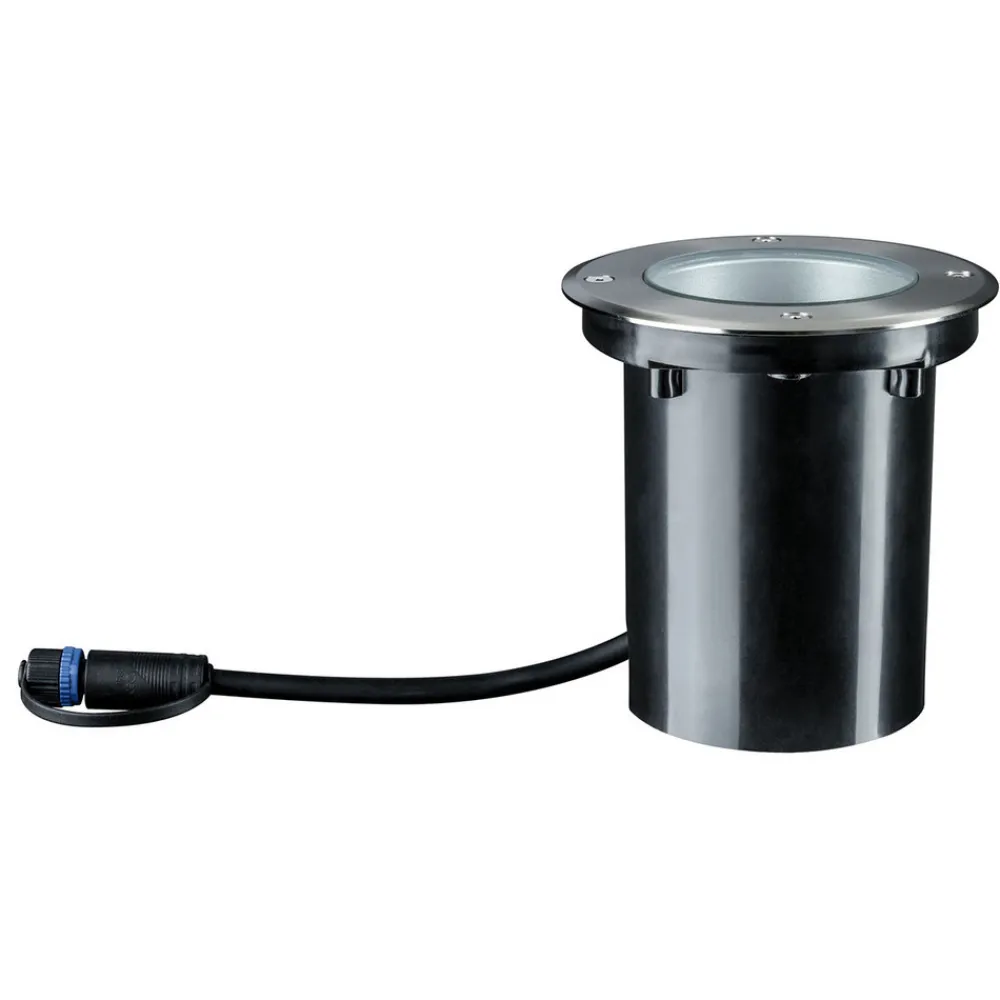 Svingbar nedfelt LED-gulvlampe Plug & Shine i rund form Denne runde nedfelte lampen er det perfekte valget for en målrettet lysaksent på fasaden, på terrassen eller i hagen med Plug & Shine-systemet. Takket være reflektorpærens form sendes lyset fra LED-lampen ut i en smal vinkel. Lysenheten kan svinges rundt. Det sølvfargede metallhuset er rustbestandig, vann- og støvtett. Armaturen tåler belastninger på opptil 500 kg – Med en driftsspenning på 24 V og vanntette kabler, tilkoblinger og armaturer er Plug & Shine fra Paulmann en allsidig og sikker belysningsløsning for uteområder – Transformator med støpsel og skjøteledning finnes som tilbehør – Kan alltid slås av og på via lysbryter – For fjernkontroll kreves en kontroller (se tilbehør) – Plug & Shine er egnet for integrering i Smart Friends for styring via Smart Friends-appen (for iOS og Android). Til dette kreves en ZigBee-kontroller (se tilbehør). Plug & Shine kan også integreres i andre ZigBee-kompatible smarthussystemer (f.eks. for stemmestyring via Amazon Alexa), noe som krever en tilsvarende gateway – maks. kabellengde strømkilde – armatur: 50 m – motstandsdyktig mot bassengvann