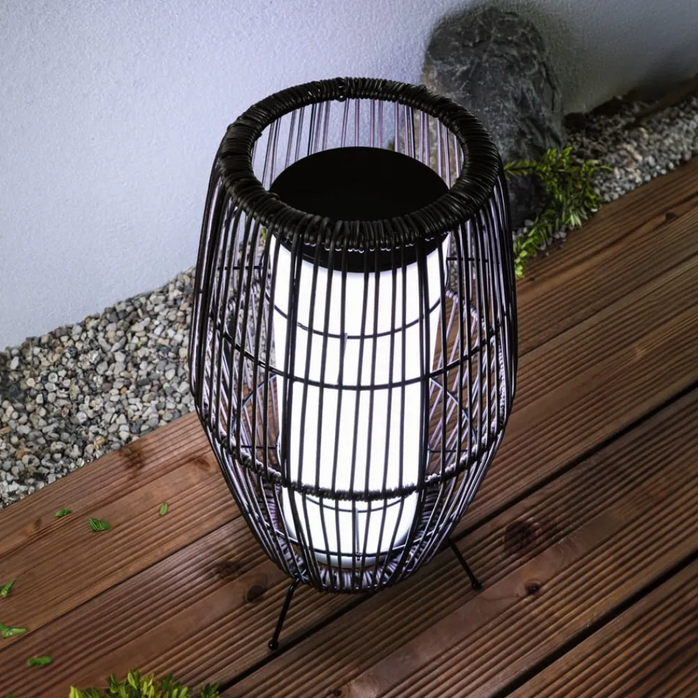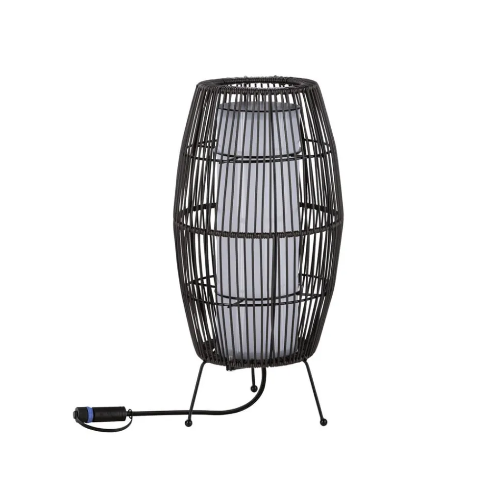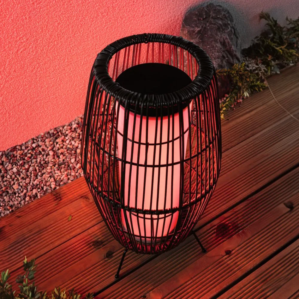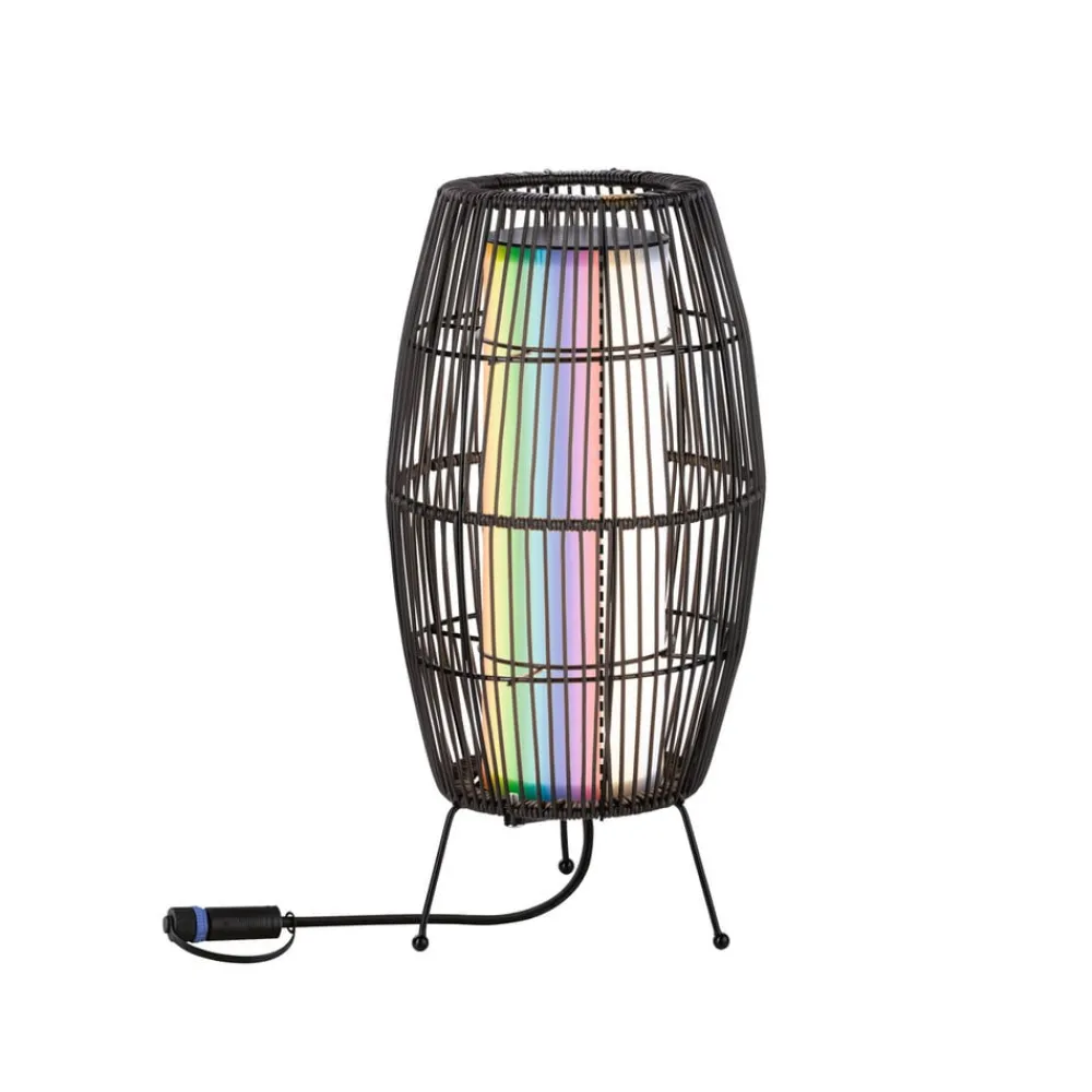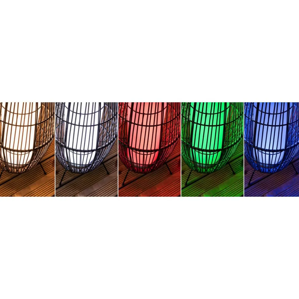 Plug & Shine LED-terrasselampe Basket, ZigBee, IP44, RGBW i rottingutseende LED-terrasselampen Basket kan brukes til å skape dekorative lysaksenter på terrassen, på balkongen eller i hagen. Lampen fra Plug & Shine-serien er dekorativ og utrolig allsidig når det gjelder lysdesign takket være RGBW. Den kan enten betjenes med Plug & Shine-kontrolleren, som er tilgjengelig som tilbehør, eller styres med alle ZigBee-baserte systemer takket være ZigBee-kompatibiliteten. Transformatorer, kontakter og andre lamper fra Plug & Shine-serien kan brukes til å skape en skreddersydd belysningsinstallasjon for utendørsarealer. For tilkobling til 230 V kreves en transformator. De innebygde LED-lampene gir farget lys eller trinnløst justerbart hvitt lys i området fra 2700 K varmhvit til 6500 K dagslys, alt etter behov – Kan kombineres med alt tilbehør fra Plug & Shine-serien
