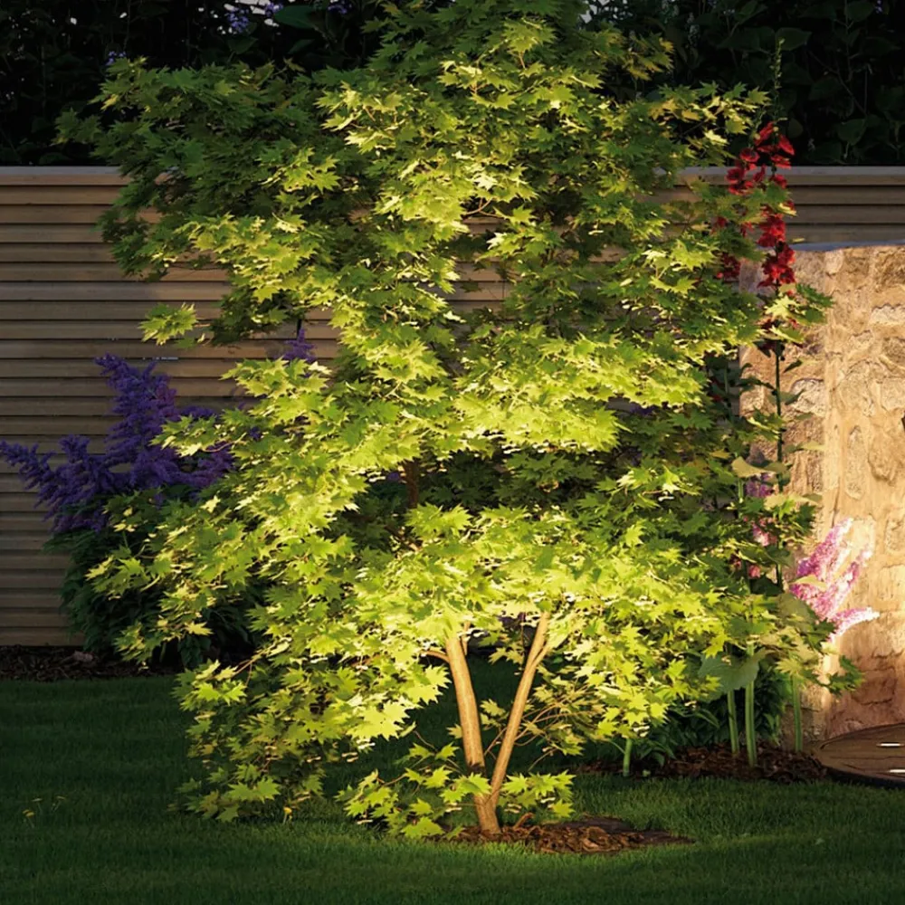 Sting Plug & Shine LED-lamper med jordspyd med rundt hode Lamper med jordspyd er populære utendørs utstyrselementer for sti- og aksentbelysning som kan plasseres fleksibelt på strekninger med uforseglede overflater. Sting kompletterer denne allsidigheten med den smarte styringen og den praktiske modulære kombinasjonsmuligheten til Plug & Shine. Armaturen er helt i antrasittsvart aluminium med et rundt hode som kan vippes 120°, og holder seg visuelt i bakgrunnen om dagen – Med en driftsspenning på 24 V og vannbeskyttede kabler, tilkoblinger og armaturer er Plug & Shine fra Paulmann en allsidig og sikker belysningsløsning for uteområder.