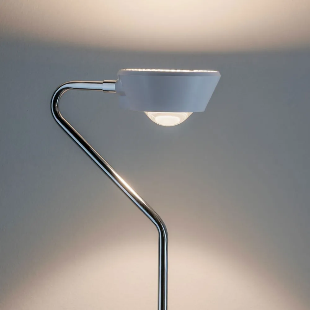 Ramos LED-gulvlampe passer perfekt inn i ethvert moderne rom. Bøyningen av metallstativet og spothodet til lampen som kan svinges med 355 °, fanger raskt betrakterens øye. Spothodet består av en hvit plastring som omslutter en glasslinse med lysdioder. Lyset kan stråle oppover og nedover, og spesielle lysaksenter opprettes ved å påføre en dikroisk film (inkludert) på undersiden av glasslinsen. Utstyrt med en støpsel og bryter inkludert trinndimmer, er Ramos en optimal tilleggsbelysning i rommet.