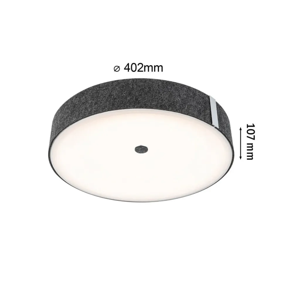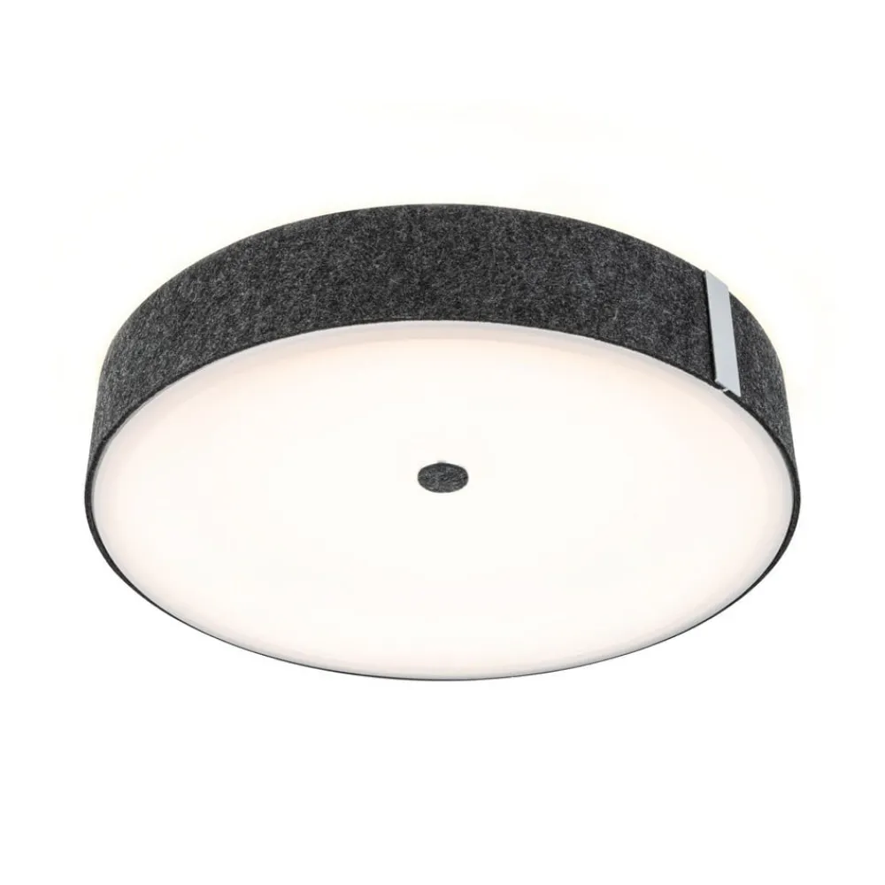 Den smarte LED-taklampen Malika i filt i antrasitt imponerer ikke bare med sitt moderne og enkle design, men skaper også en behagelig atmosfære og reduserer forstyrrende bakgrunnsstøy. I tillegg til direkte, storflate belysning gjennom den matte diffusoren på undersiden, gir Malika også indirekte lys over taket. Takket være Tunable White-funksjonen kan lysfargen justeres etter behov: fra dagslys hvitt arbeidslys til varmhvit avslappende belysning. Lampen er kompatibel med ZigBee 3.0.