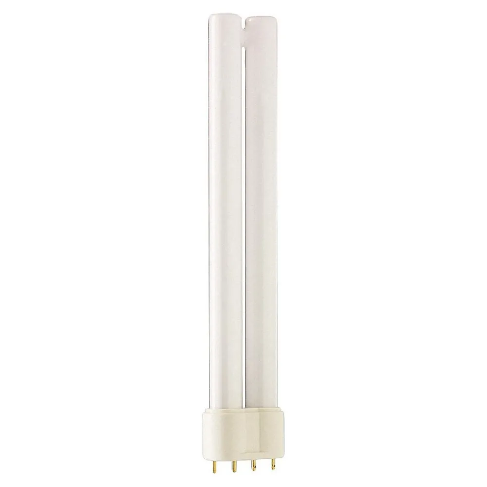 2G11 18W – 80W kompaktlysrør Master PL-L 4 Pin – Philips-merkevare Fordeler – Spesielt lang levetid – Mer lys ved høye temperaturer i armaturen takket være Philips broteknologi Egenskaper – Dimbar opp til 10 % med egnet elektronisk ballast – God fargegjengivelse Bruksområde – Meget godt egnet for kompaktlysrør, B-Leuchten, innfelte eller utenpåliggende downlights i private og profesjonelle miljøer. Merknader – Lampens fotometriske og elektriske egenskaper påvirkes av driftsforholdene, f.eks. omgivelsestemperaturen og driftsposisjonen, samt ballasten som brukes – Hyppig veksling med utilstrekkelig forvarmede elektroder forkorter lampens levetid