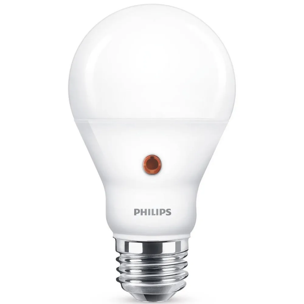 E27 LED -lampe 7,5 W med dag / natt -sensor, matt, ikke dimbar, 2700 K