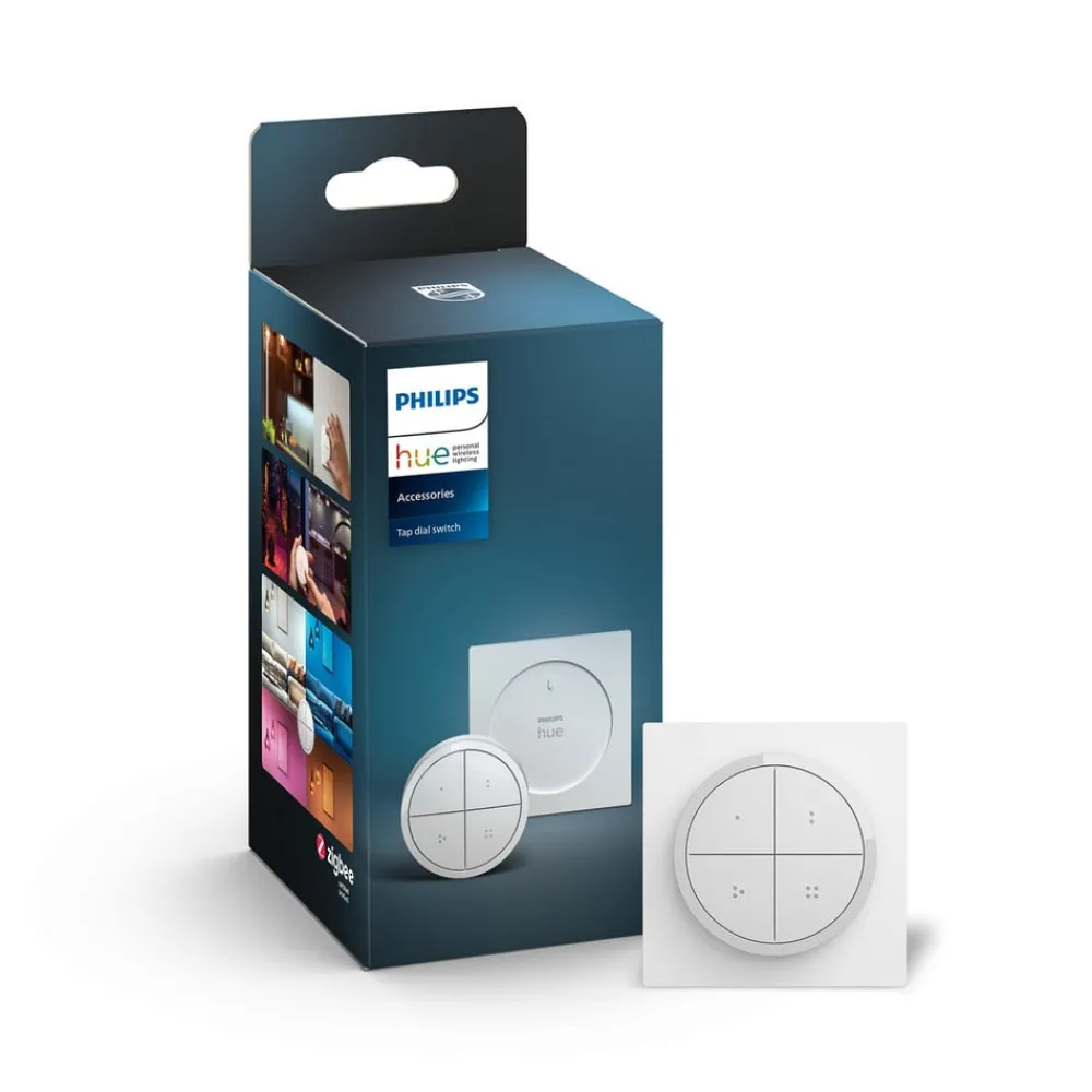 Philips Hue Tap Dial-bryteren fungerer som tilbehør til Hue-belysningssystemet. Den kan brukes som bryter på veggen eller som fjernkontroll og gir enkel og forståelig tilgang til Hue-systemet. Så alle i huset kan enkelt få tilgang til og justere eller kontrollere lysinnstillingene.