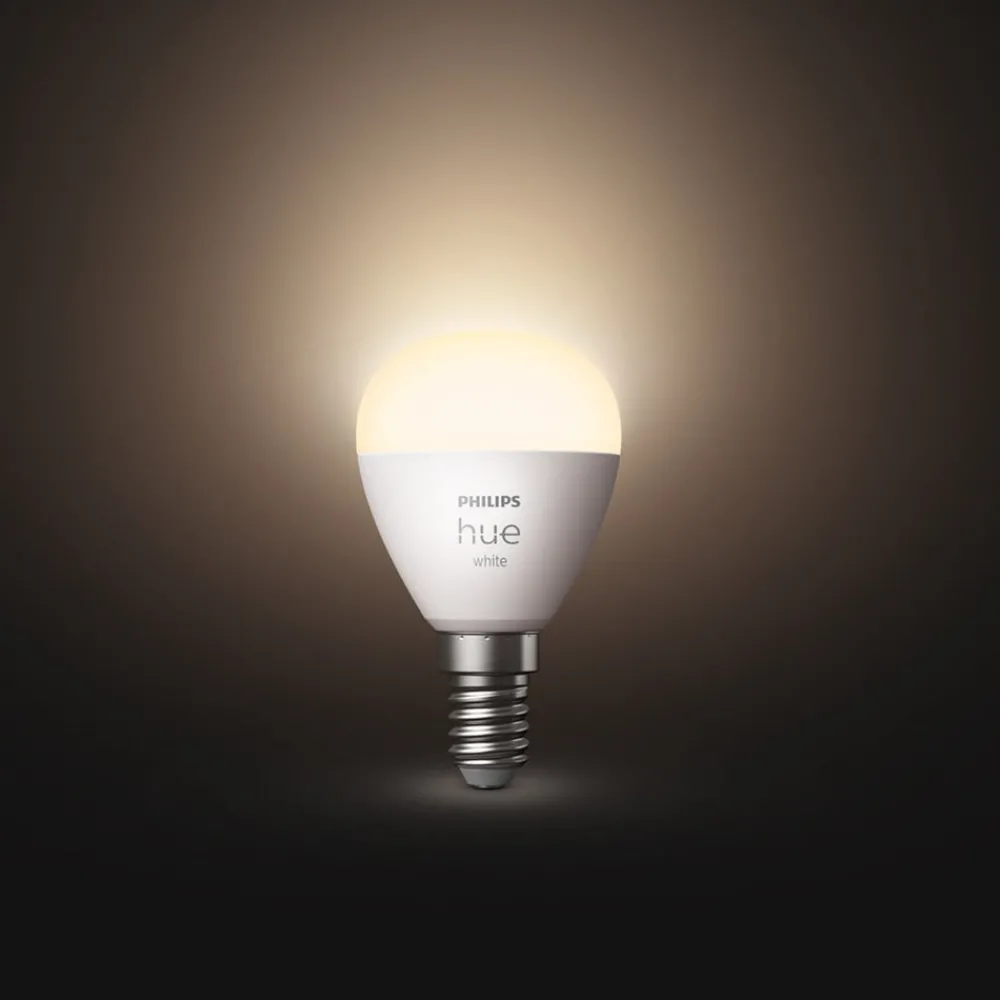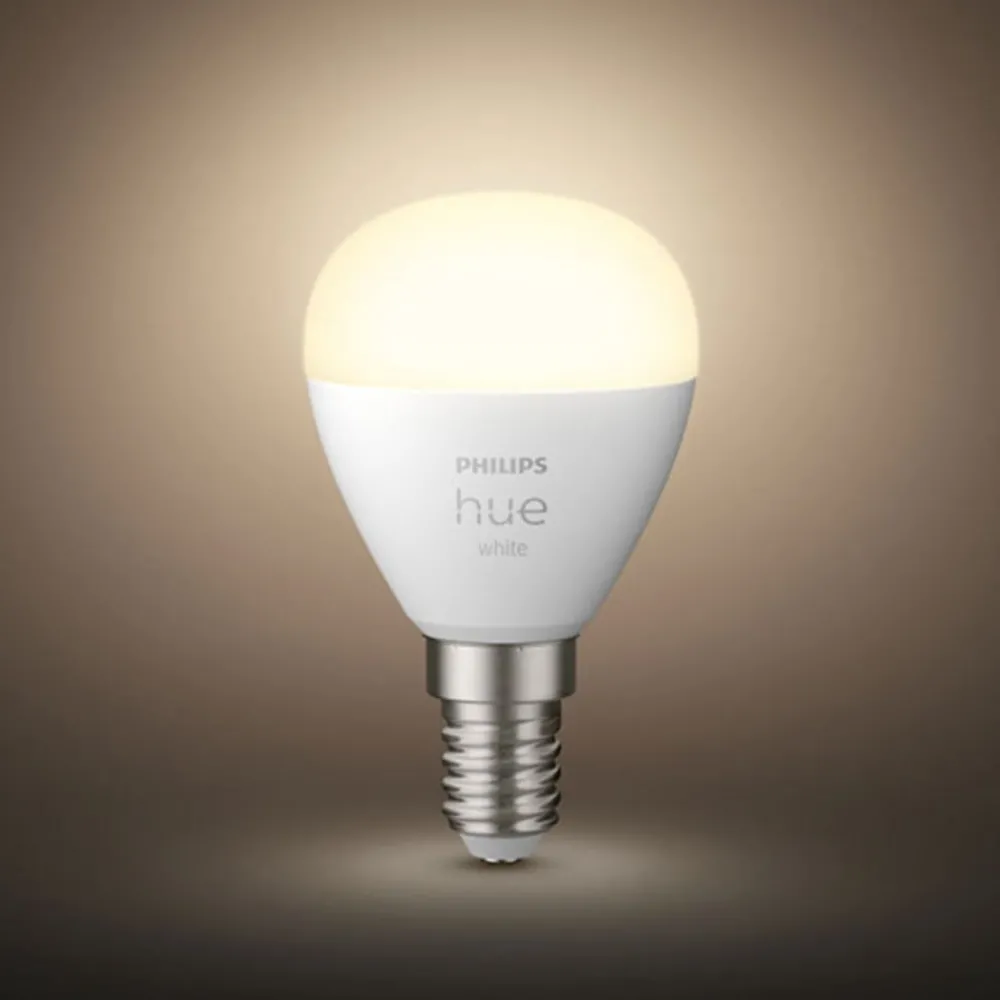 LED -falllampen fra Hue White -serien kan styres enten via integrering i Hue Bridge eller via Bluetooth uten ekstra tilbehør. Den erstatter enkelt konvensjonelle lyskilder og kan gjøre ethvert lys med en E14 fatning til et smart, kontrollerbart lyselement. Med sin varme hvite lysfarge kan den alltid skape riktig stemning takket være justerbar lysstyrke.