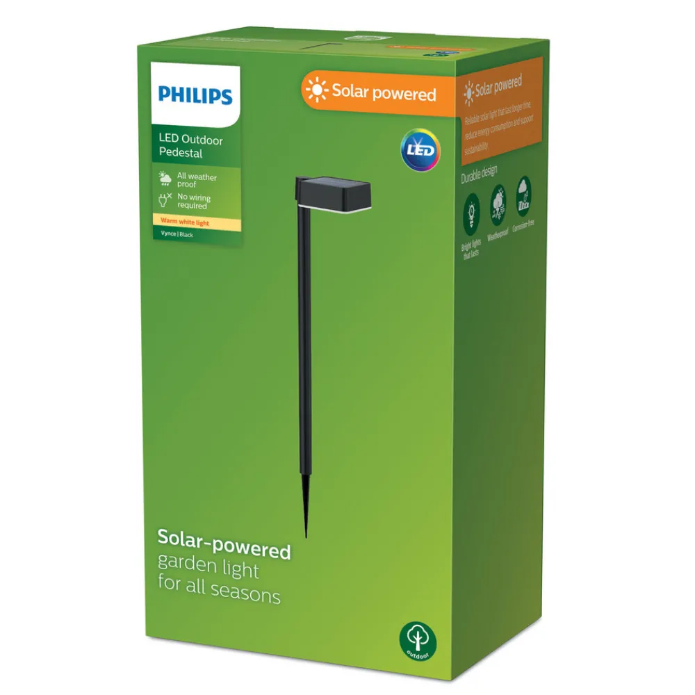 Philips LED solcelledrevet jordspydlys Vynce, hode 10,5 x 10,5 cm New