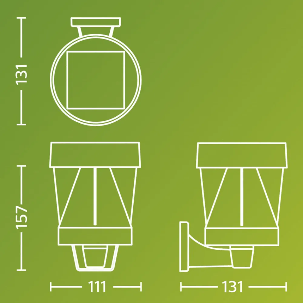 Den solcelledrevne utendørs LED-vegglampe Avery i høykvalitetsplast er designet for å fungere pålitelig under alle værforhold. Den integrerte dagslyssensoren slår den automatisk på ved skumring og gir et varmhvitt lys.