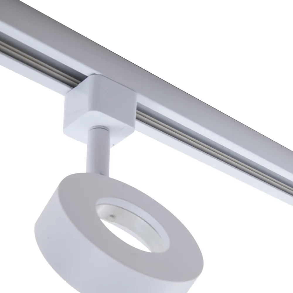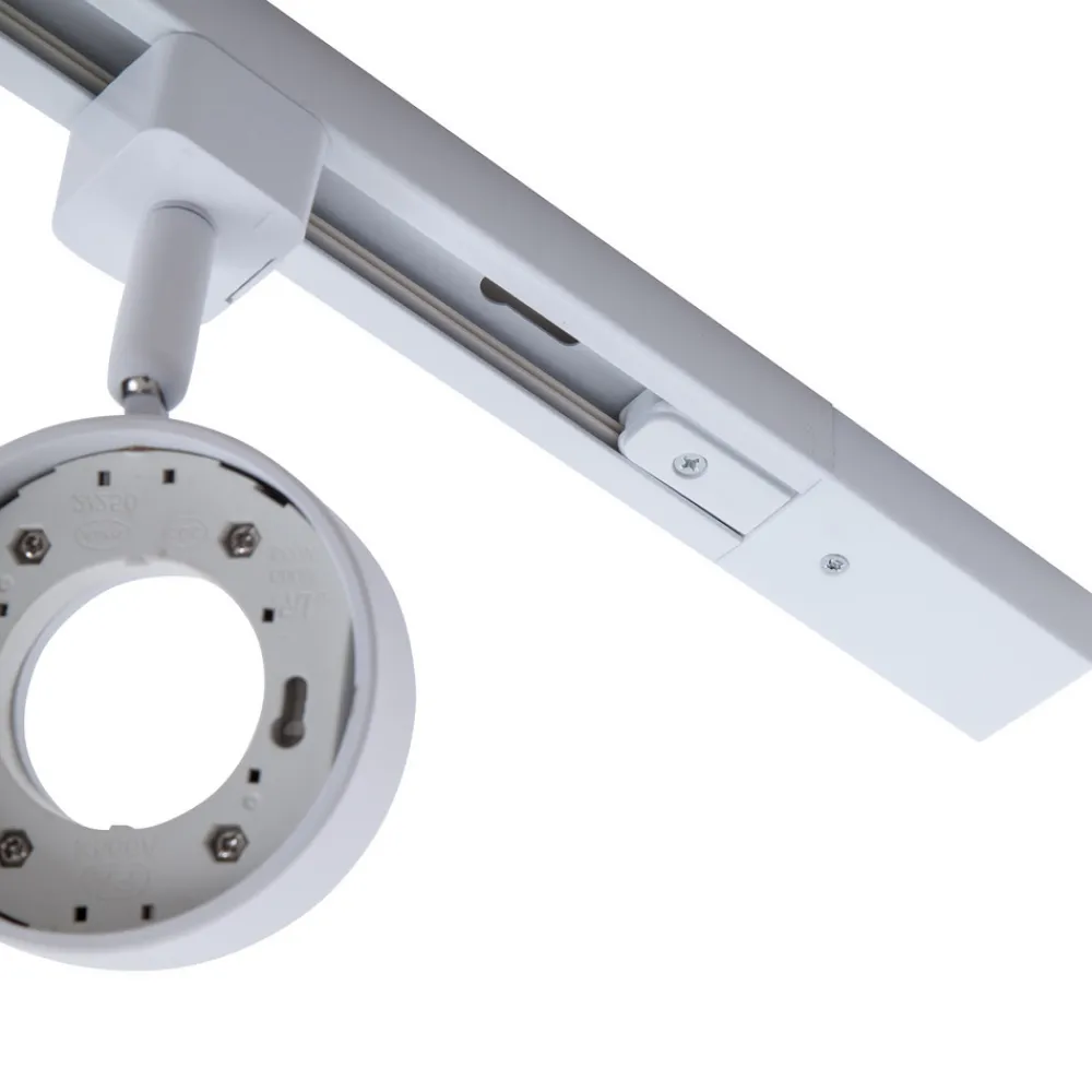 Jardani skinnesystem med 1-fase skinne – perfekt for kommersielle formål Dette skinnesystemet består av tre spotlights og en 1 meter lang skinne. Begge er laget av aluminium og leveres i hvit farge. Spotlightene kan utstyres med GX53-lyskilder og gir mulighet for fritt valg av lysfarge, slik at de kan tilpasses personlige behov. Spottene kan også roteres 350° og vippes 90°, slik at lysstrålen kan rettes fleksibelt. Jardani er ideell for belysning av en butikk.