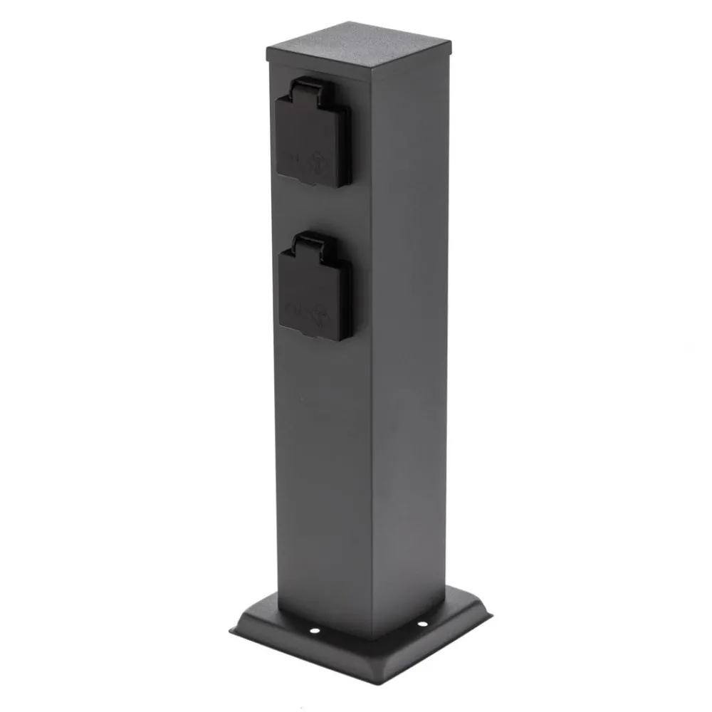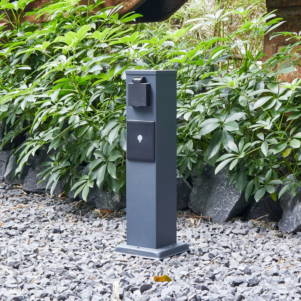 Sandgrå Voicu-stikkontaktsøyle i jern for utendørs bruk Voicu er et praktisk innslag i hagen eller på terrassen. St…