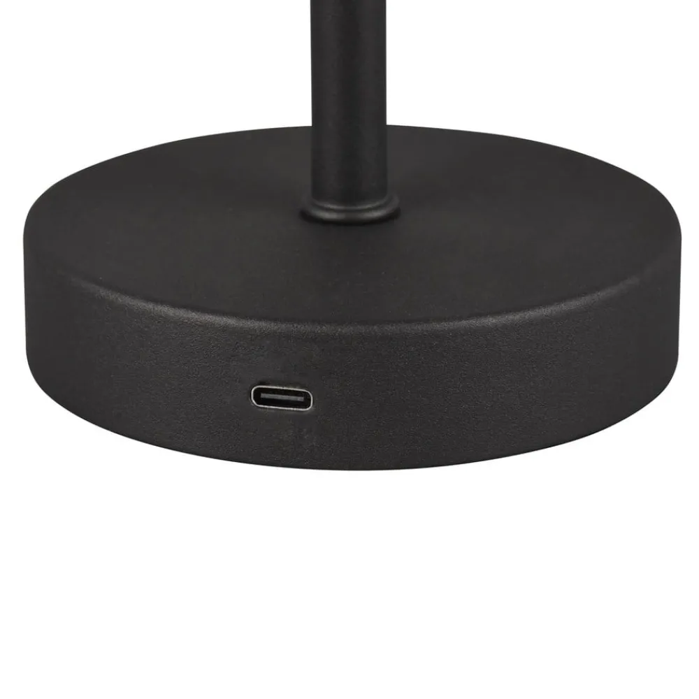 Reality Leuchten Jeff LED oppladbar bordlampe, matt svart, høyde 30 cm, metall| Kontorbelysning