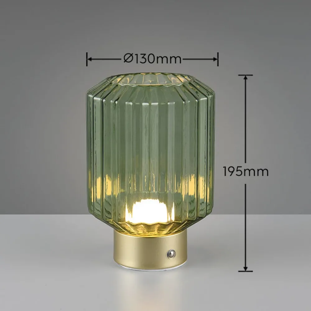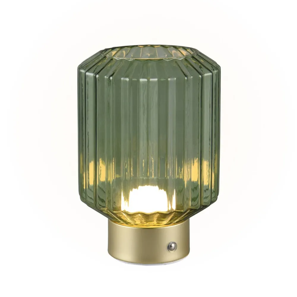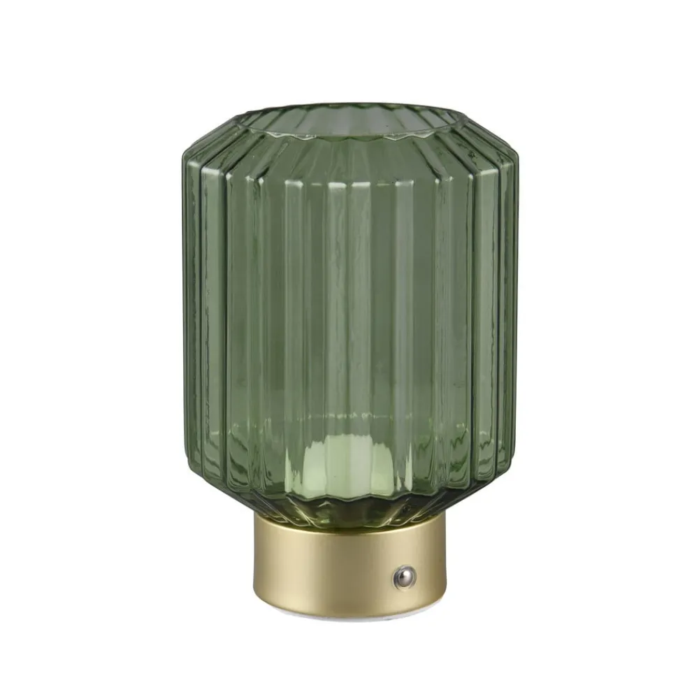 Lord LED-bordlampe, messing/grønn, høyde 19,5 cm, glass