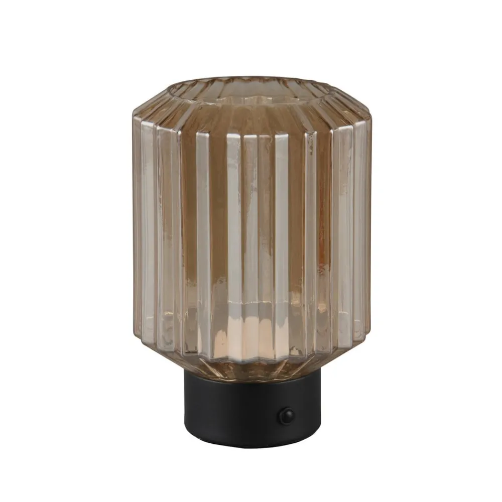 Lord LED-bordlampe, svart/amber, høyde 19,5 cm, glass