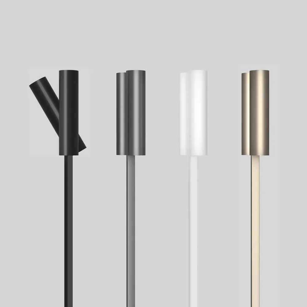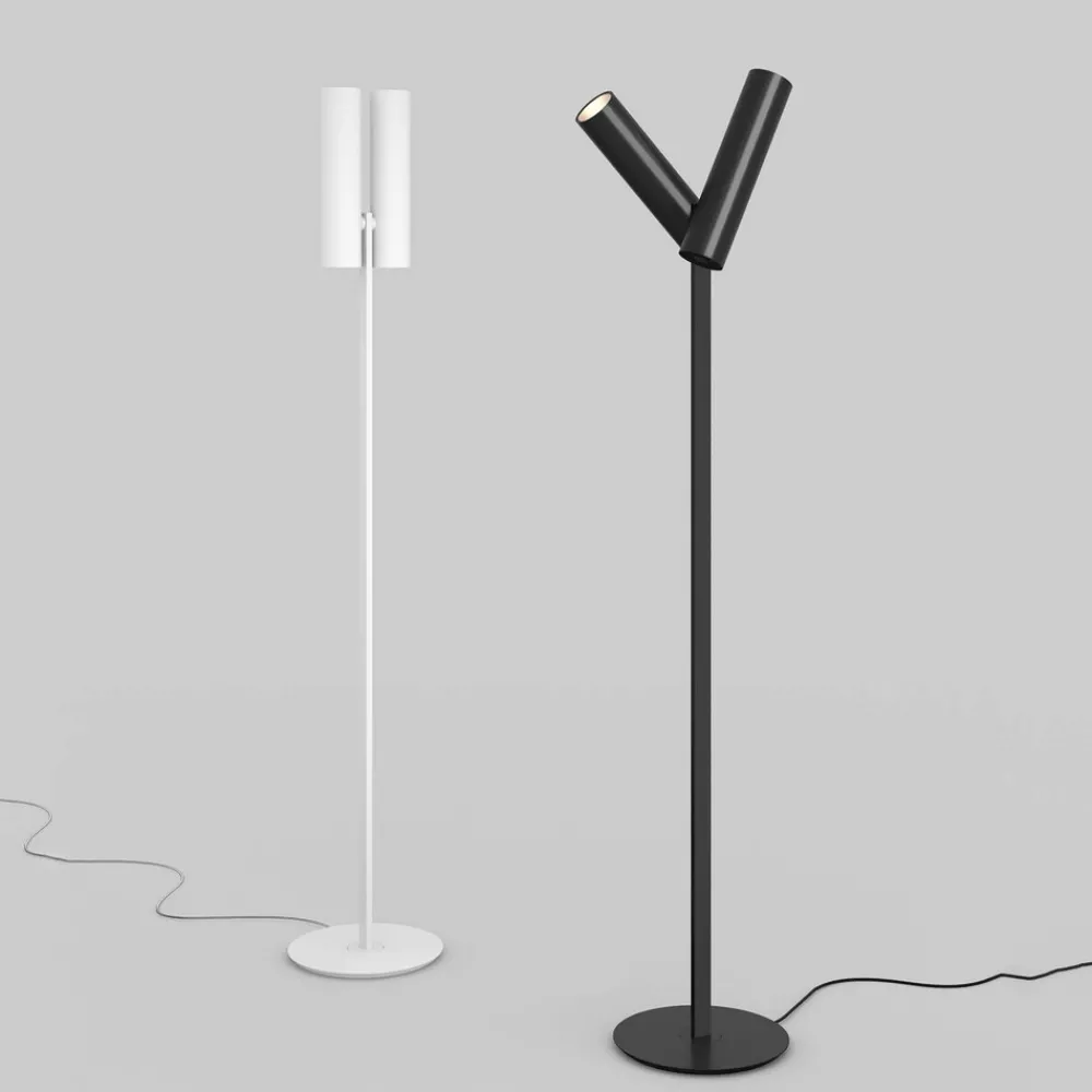 Den puristisk utformede gulvlampe fra Rotaliana består av en slank stang og to sylindriske lampehoder i aluminium. De to hodene kan hver svinges 45° til hver side. Det er også en bryter på hvert hode som muliggjør separat på- og avkobling samt dimming. Med denne gulvlampe kan store leiligheter, men også offentlige rom som hoteller, teatre eller museer, utstyres med et lys som fremhever takene spesielt.