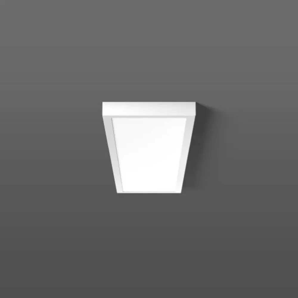 LED-takarmatur Sidelite ECO Multilumen, rektangulær, mikroprismatisk avdekningDen rektangulære LED-takarmaturen Sidelite ECO Multilumen er en svært effektiv og energieffektiv utenpåliggende takarmatur som er spesielt egnet for bruk på kontorer, men som også er godkjent for bruk i næringsmiddelindustrien. Den består av en ramme av pulverlakkert aluminium, en utenpåliggende ramme av pulverlakkert stålplate og et mikroprismatisk deksel av ikke-gulnende plast (PMMA). Den laterale lysinnsprøytningen (RGZ-SIDELITE®-teknologi) gir en homogen luminansfordeling over gjennomsnittet, noe som resulterer i en lyssterk og jevn belysning. Armaturen er utstyrt med Multilumen-funksjonen. Denne funksjonen gjør det mulig å justere armaturens lysstrøm i fire trinn via to små kontroller innebygd i armaturhuset. Sidelite ECO takarmatur er fabrikkinnstilt på det laveste lysstyrkenivået som tilbys, og egner seg utmerket til kontorområder (UGR<19) og skjermarbeidsplasser i henhold til DIN EN 12464-1.