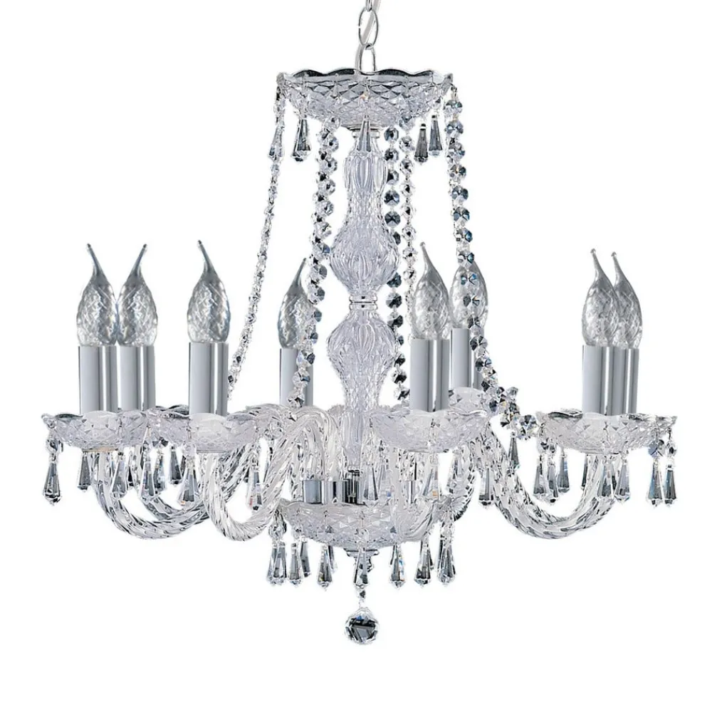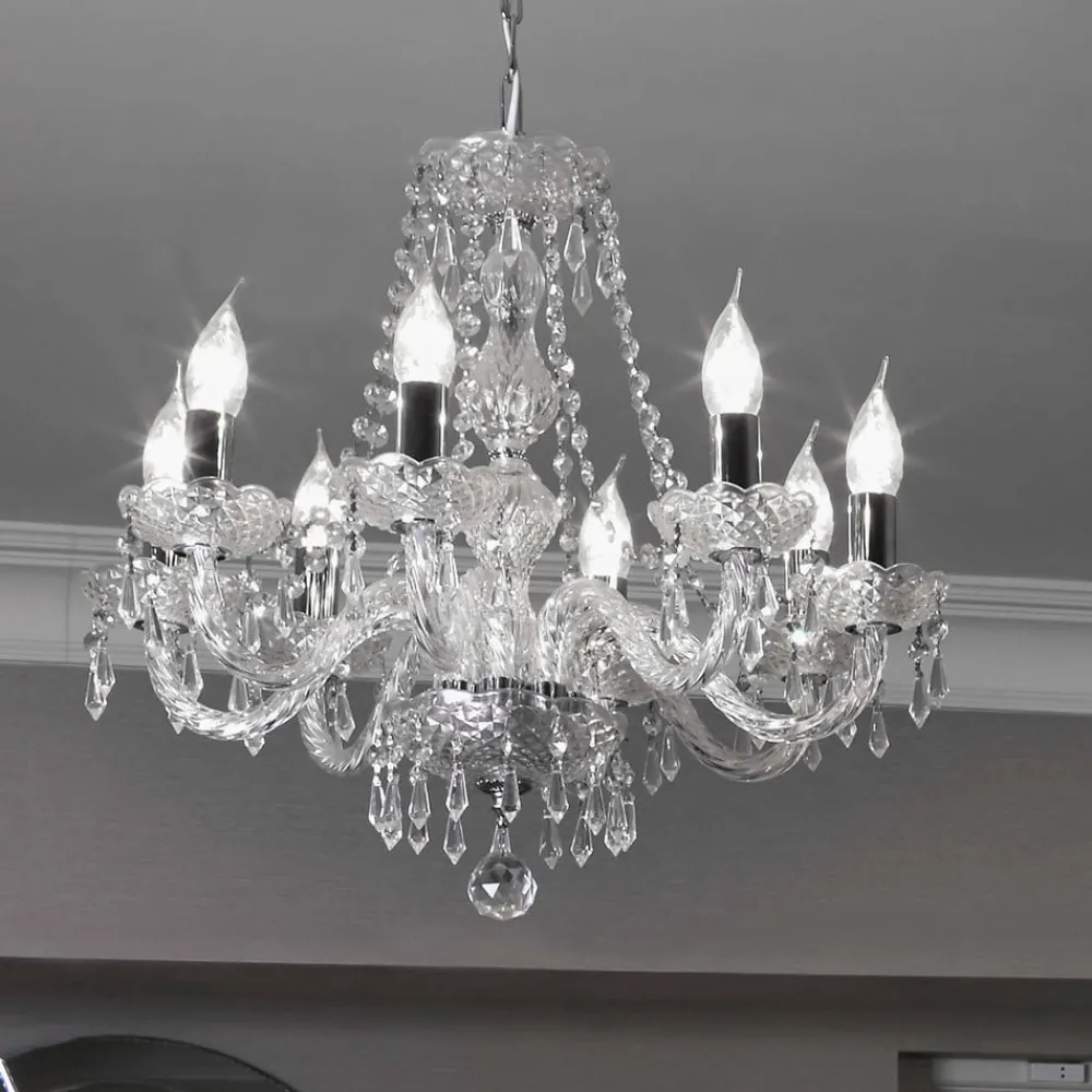 Utallige krystaller edelt slipt, pynter lysekronen HALE. Den imponerende fremtoningen pynter opp i alle romme og avgir en funklende glans. Det er ikke bare et dekorativt påheng som pynter opp lysekronen. De elegant buede armene består av slipt krystallglass, og de reflekterer det utgående lyset svært effektfullt. Det polerte metallet i krom avrunder helhetsbildet. Luxor – en lekker lysekrone for elegant stemning.