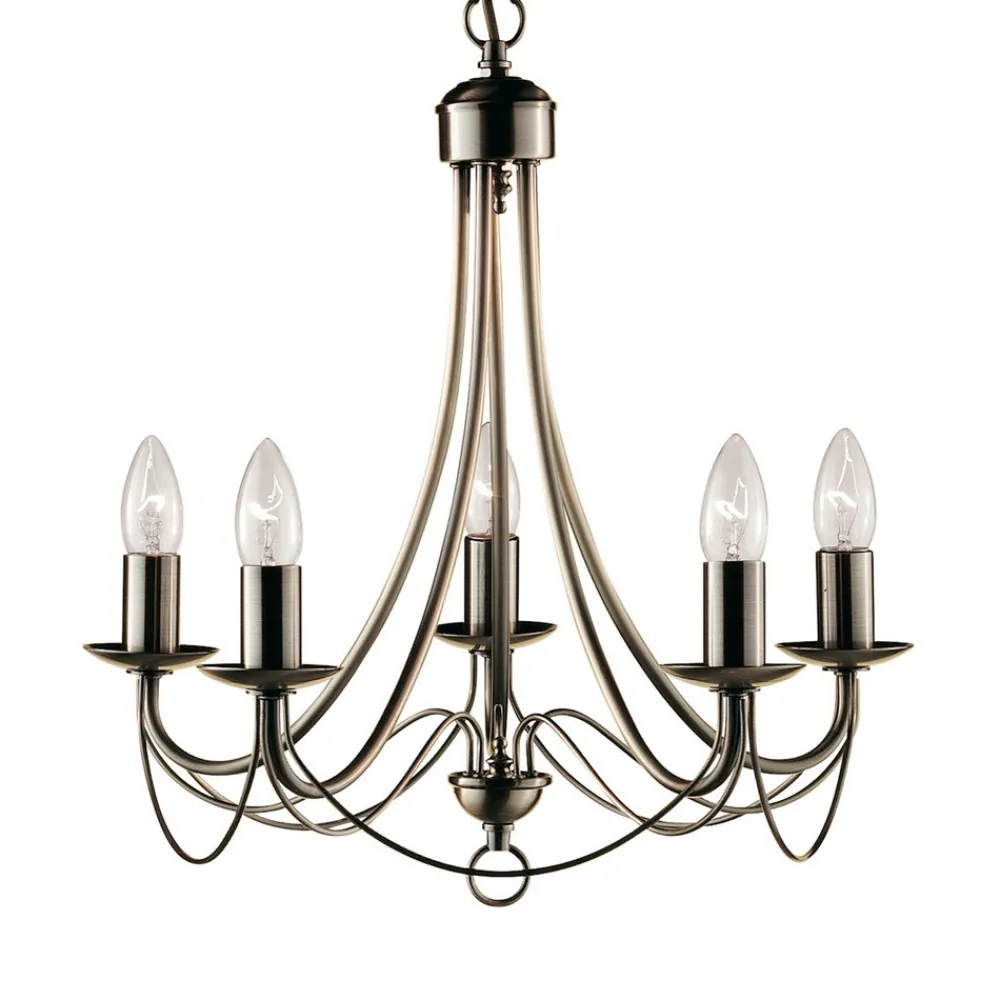 Elegant lysekrone MAYPOLE i storslagen antikkmessing