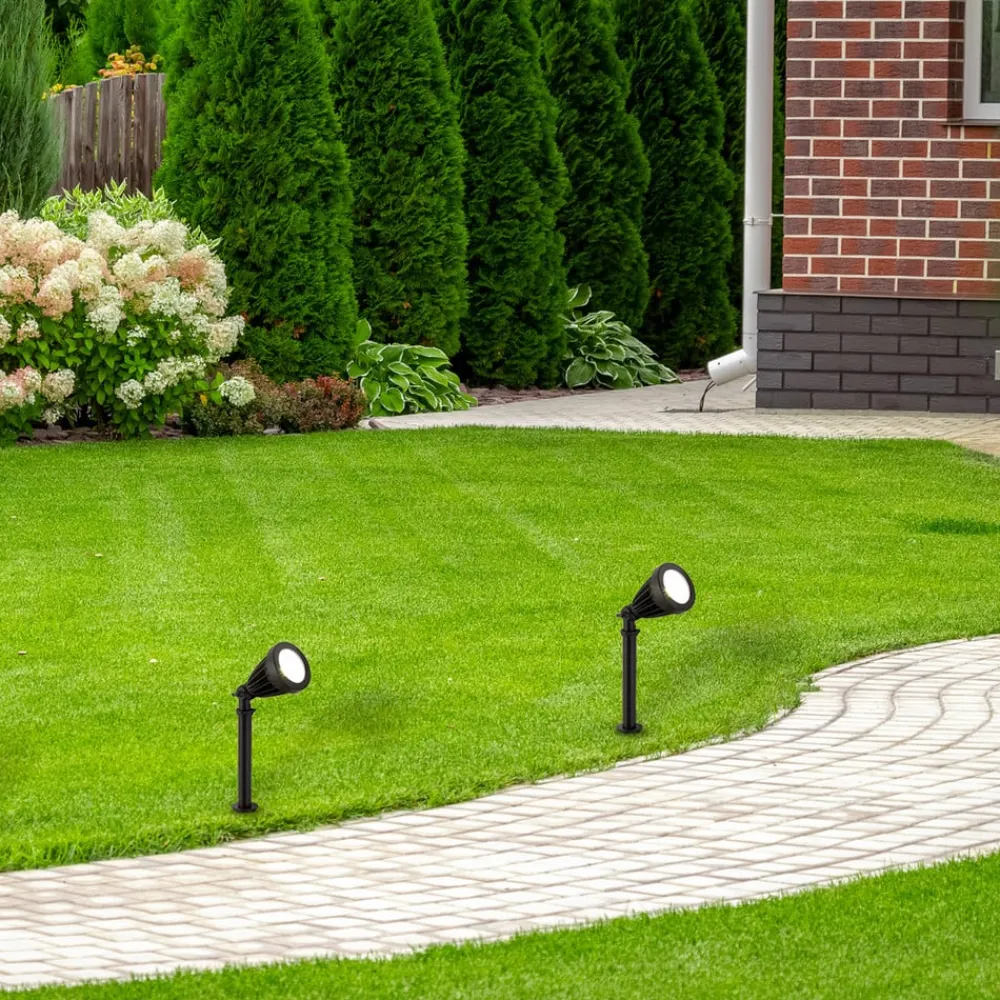 LED spot med jordspyd Spikey, svart, metall, 25 cm, IP54