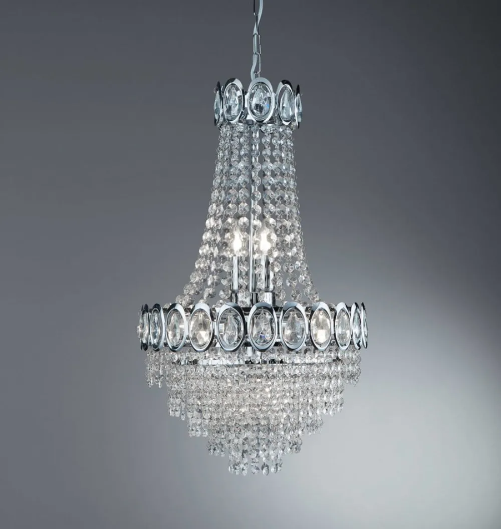 Hengelampen Limoges er et fantastisk blikkfang i store, lyse rom. Skjermen på hengelampen med seks lys består av mange glassperler som er plassert sirkelformet i flere lag rundt lyspærene. Det henger også perlekjeder mot baldakinen. Glassperlene gjenspeiler alt lyset og alle fargene i rommet, slik at det oppstår vakre fargespill.