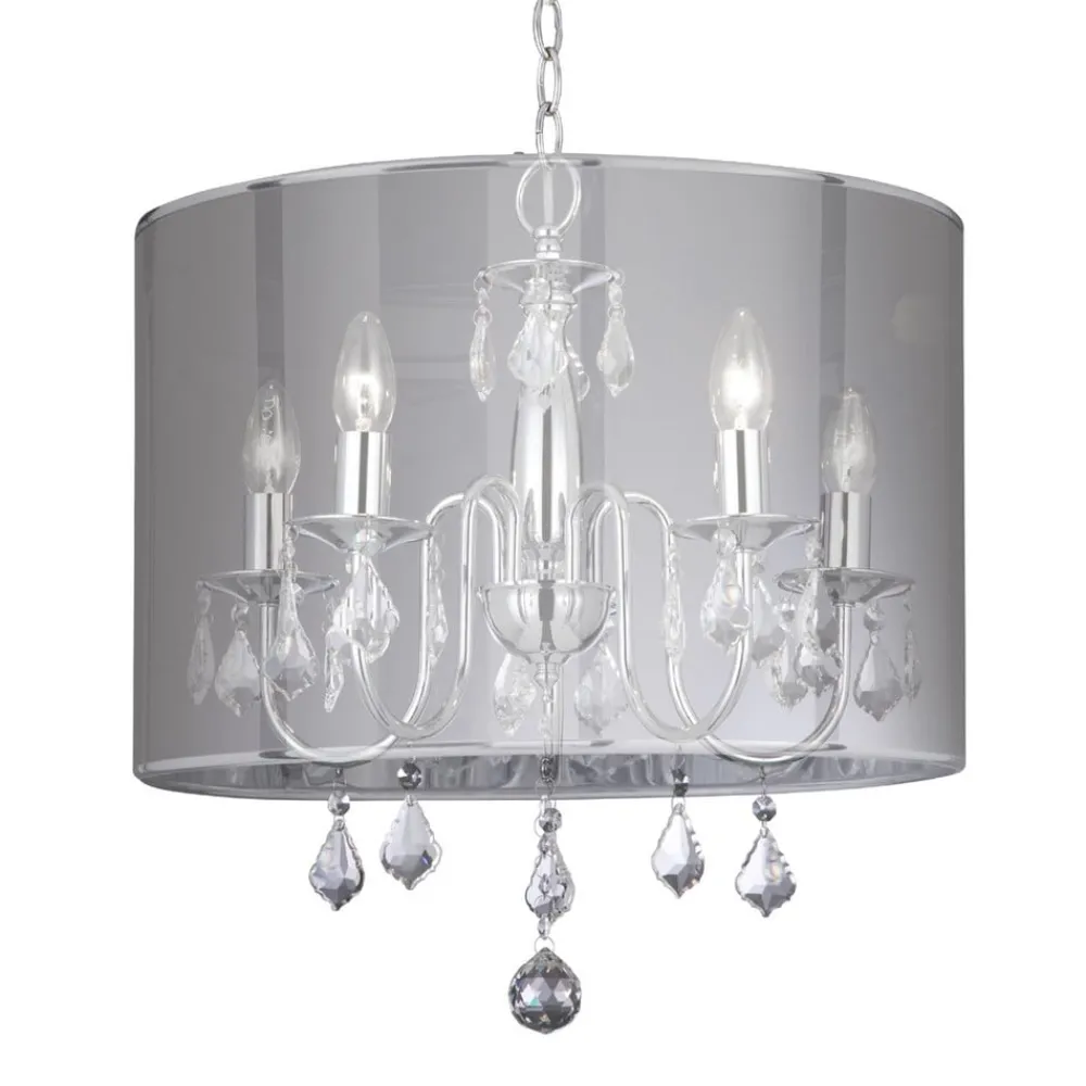 Selv om lysekronen OLIVIA er utformet i klassisk form, brer den en moderne flair. Dette ligger i utformingen med kromfarget stativ som utfylles av utallige glasskrystaller i tiltalende dråpeform. Den transparente skjermen i robust polykarbonat virker dessuten som en beskyttende hylse rundt lysekronen. På denne måten settes ikke bare moderne aksenter,men lyset gir et skarpt og jevnt lys i rommet.