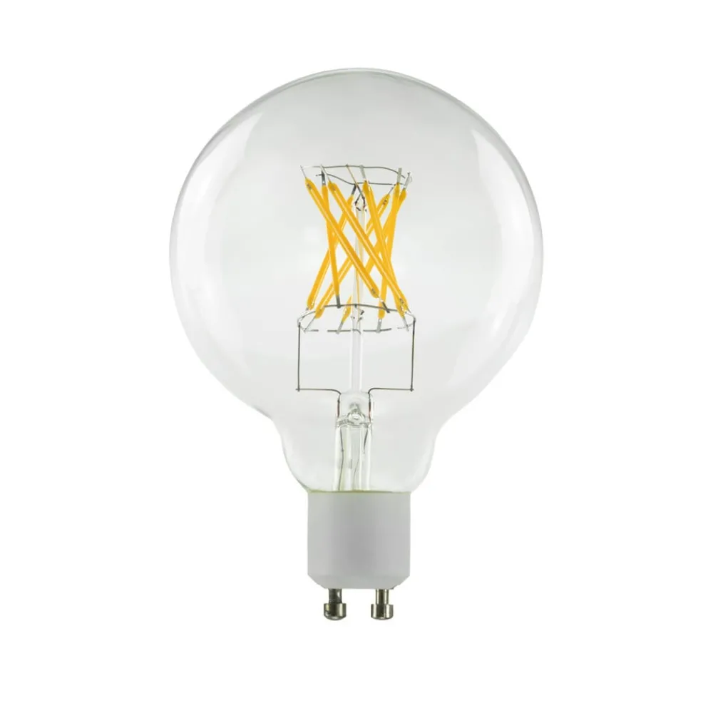 LED-globepære G80 5W filament 2 200 K dimbar med GU10-sokkel Dekorative lamper kan nå også brukes i armaturer med GU10-fatning, slik som denne LED-globepæren med klart glass og LED-filamentpærer takket være GU10-sokkelen. Globepæren spotlighter et ekstra varmhvitt lys, og lysstyrken kan også justeres med en ekstern dimmer – ekstra varmhvit lysfarge 2 200 K – spesielt god fargegjengivelse (Ra >90) – dimbar med mange vanlige dimmere som GIRA, ELTAKO, Jung og andre.