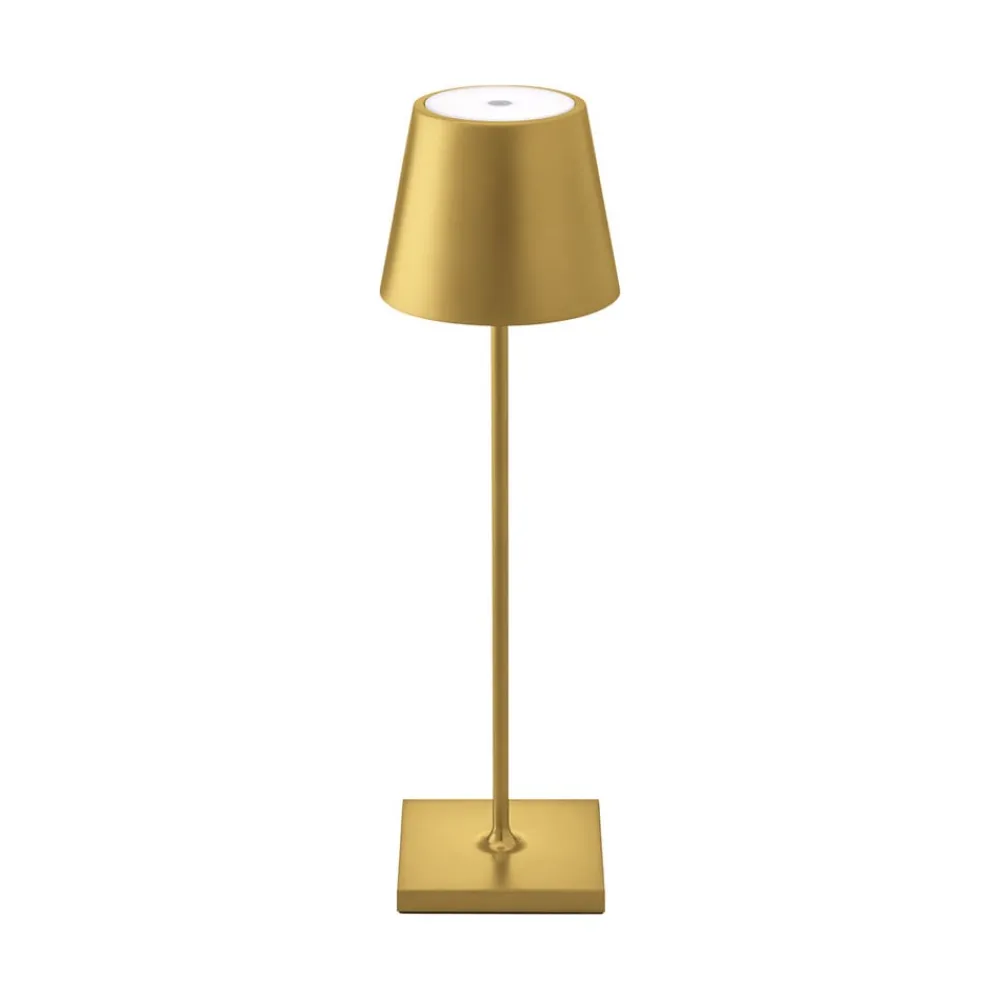 Nuindie LED oppladbar bordlampe, USB-C, gull, IP54, dimbar