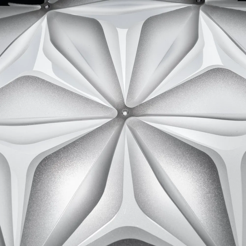 Designeren Adriano Rachele ble inspirert av livets blomst for La Vie taklampe . Den spirituelle symbolikken gir lampen en aura av energi og harmoni. Den italienske designersmia Slamp legger særlig vekt på innovasjon. Hos Slamp , for eksempel, utvikles nye komposisjoner med teknopolymerer for å perfekt implementere deres visjoner om armaturer. I tillegg til behandlingsmulighetene gir materialene som brukes, Lentiflex® og Opalflex®, mange andre fordeler. Materialet gjør lysene motstandsdyktige, lette og motstandsdyktige mot blant annet UV-stråler.