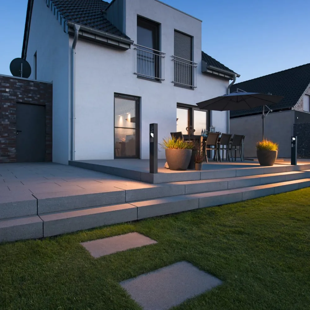 Antracittfarget Eskina Frame 75 LED-veilampe – 2 lyskilder LED-veilampen Eskina Frame imponerer med sin allsidige og vellykkede design. De populære utelampene i Eskina-serien byr nå på enda flere bruksmuligheter i designalternativet Frame. Den antrasittfargede Eskina Frame gjør en stilig figur i ethvert uteområde. De dreibare lampehodene sørger for fleksibelt justerbart lysutslipp. Takket være kapslingsgraden IP65 er LED-veilampen Eskina Frame 75 optimalt beskyttet mot vær og vind. I tillegg kan fargetemperaturen og dermed lysfargen endres fleksibelt før installasjon ved hjelp av CCT-bryteren som er innebygd i armaturen. Eskina Frame leveres med løse kabler, og en tilkoblingsboks er nødvendig for drift.