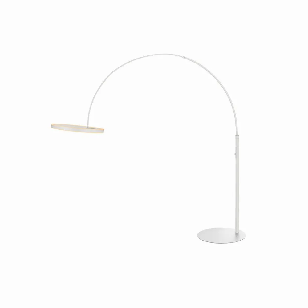 LED-gulvlampe One Bow FL Ideell for hoteller, restauranter og mindre butikker: LED-gulvlampen One Bow FL bygger bro mellom vellykket design og lys av høy kvalitet. Det sirkulære lampehodet spotlighter sitt fargetemperatur-regulerbare og dimbare lys både oppover og nedover. Takket være fargegjengivelsesindeksen på CRI 90 gjengis fargene naturlig – Integrert dimmer – Strålevinkel 140° – Vertikalt svingområde: 120° – Kan roteres horisontalt med 60