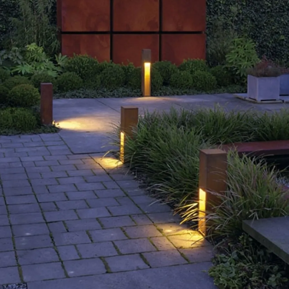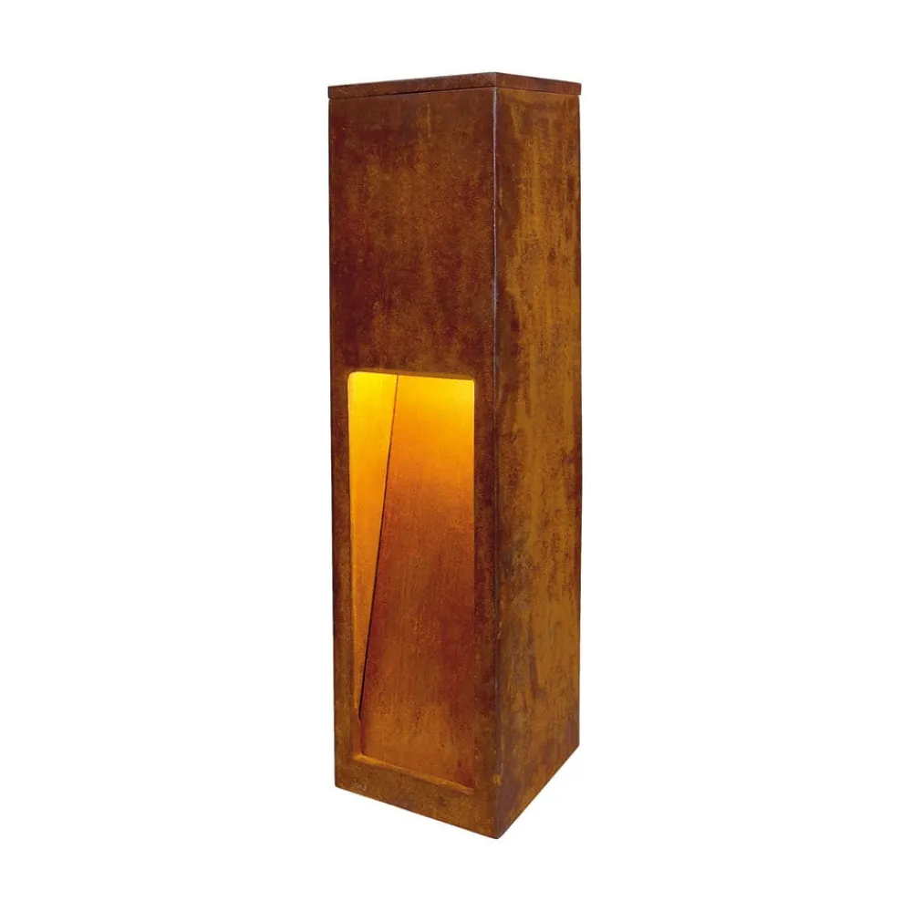 Spesialtilpasset Rusty Slot 50-sokkelampe Rusty Slot 50-sokkelampen har den interessante og innovative elegansen som kjennetegner Rusty-serien. Sokkelampen er laget av høykvalitets Cor-Ten-støpt stål. Dette ble deretter utsatt for rust i en kontrollert prosess, noe som resulterte i at det dannet seg et rustlag på overflaten av lampen. Dette er forseglet på en slik måte at det beskytter det støpte stålet under mot ytterligere rust og annen forvitring. For de som liker uvanlige stiluttrykk, er denne lampesokkelen definitivt et must i innredningen av uteområder.