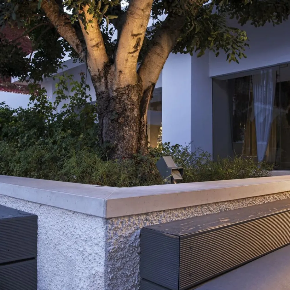 Variabel innretting – Theo Bracket jordspydbelysning Theo Bracket er en moderne jordspydbelysning som kan brukes i både private og kommersielle bygninger. Den er laget av aluminium av høy kvalitet, og det antrasittfargede utseendet gjør den svært diskret og lite iøynefallende. Takket være den vinklede lampeskjermen og det dreibare leddet kan lyset rettes etter behov, slik at området som skal belyses blir perfekt iscenesatt. Theo Bracket leveres med en 150 cm lang kabel med Schuko-kontakt. IP65 beskytter armaturen mot alle værforhold.