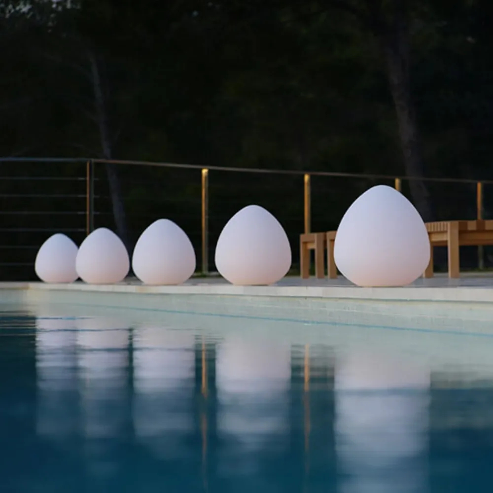 Stone XL – et dekorativt lys som til og med kan flyte og styres via en app Stone XL, som kan flyte og lyse i mange forskjellige farger, kan til og med brukes som lysende dekorasjon i vann – og selvfølgelig overalt ellers i hagen eller på terrassen. Inne i steinen, som er laget av værbestandig plast, er det montert både RGB-lysdioder og hvite lysdioder, slik at steinen gir både fargerikt og hvitt lys. Denne opplyste hagedekorasjonen kan styres ved hjelp av knappene som er integrert i lampens sokkel. Her kan du velge mellom 7 forskjellige farger, 3 lysmoduser og lysintensitet, og lyset slås av ved å trykke på begge knappene samtidig. For enda flere innstillingsmuligheter kan den glødende steinen styres med den gratis Smart & Green-appen via Bluetooth på en smarttelefon eller et nettbrett, slik at lysfargespekteret og de valgbare lysmodusene blir nesten uendelige. Den glødende steinen drives av et oppladbart batteri som gir en belysningstid på opptil 6 timer. Den kan enkelt lades opp ved hjelp av ladestasjonen som følger med.