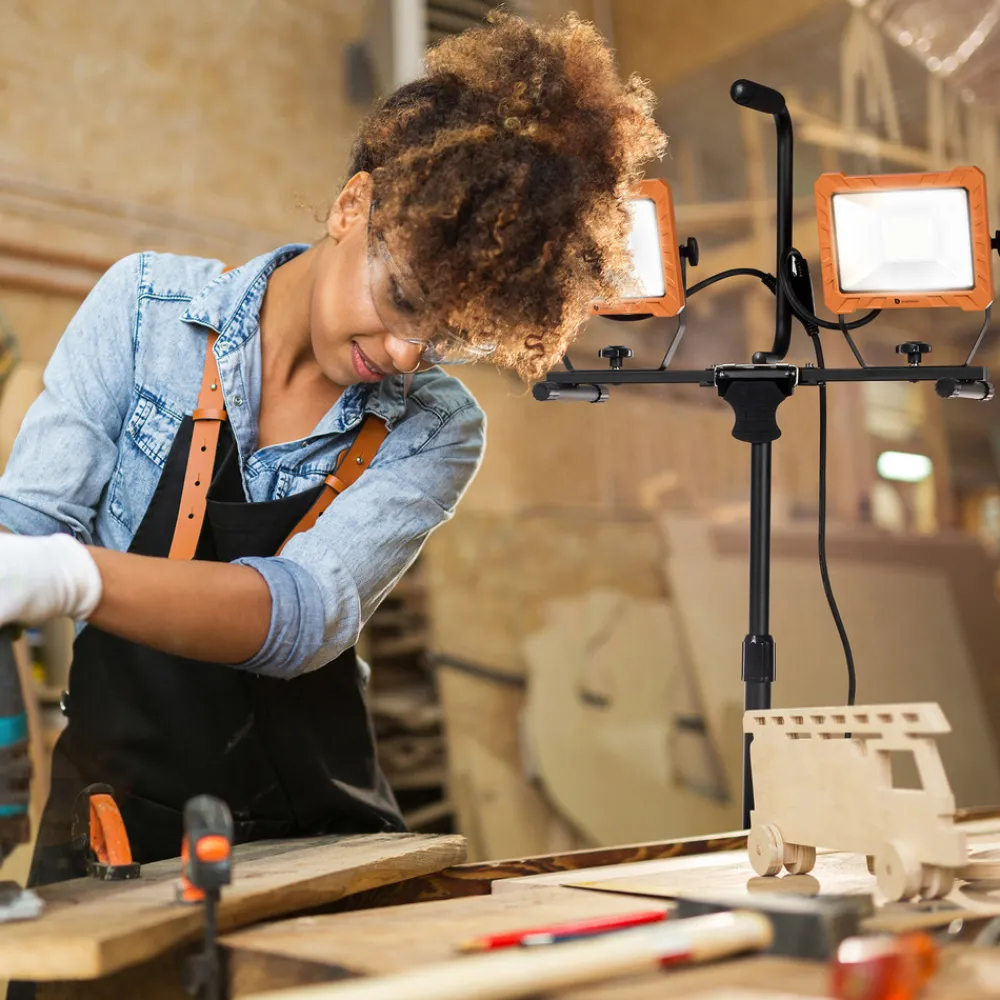 LED-byggespotlight FCL-80114 med stativ