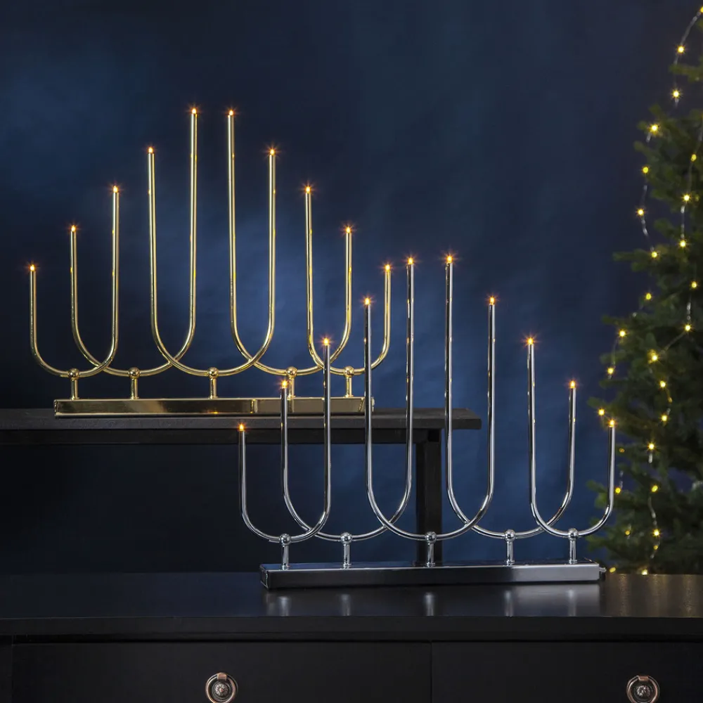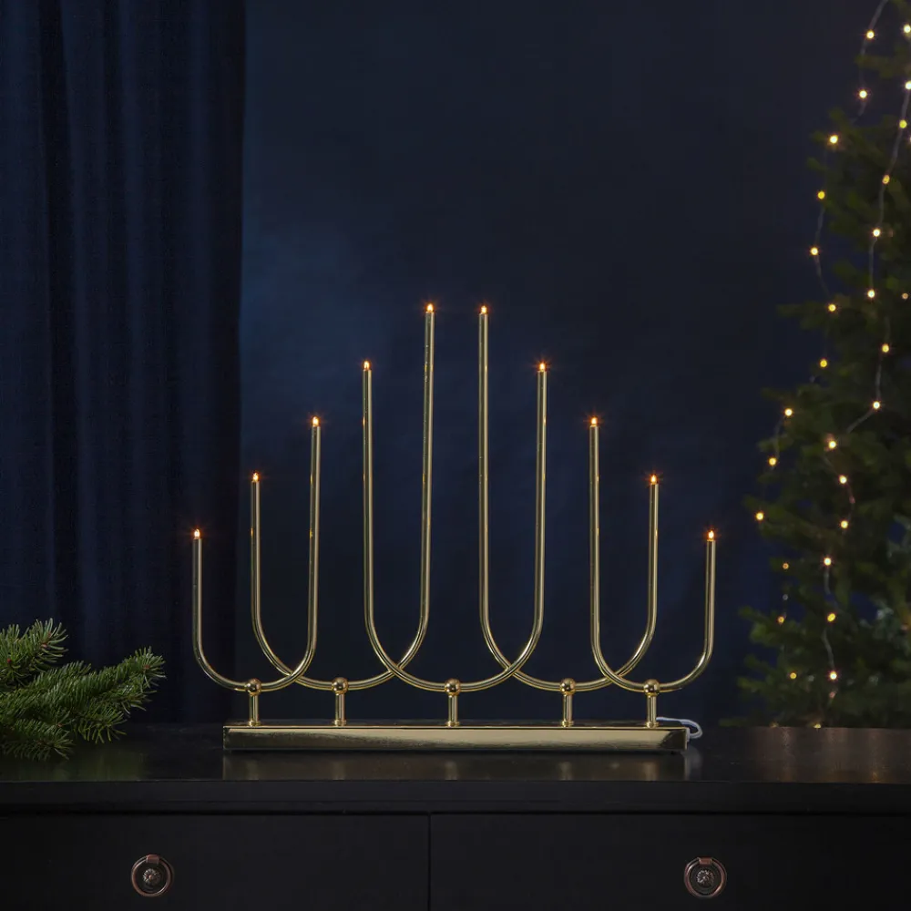 LED-lysestake Novum, 10 lyskilder, messing