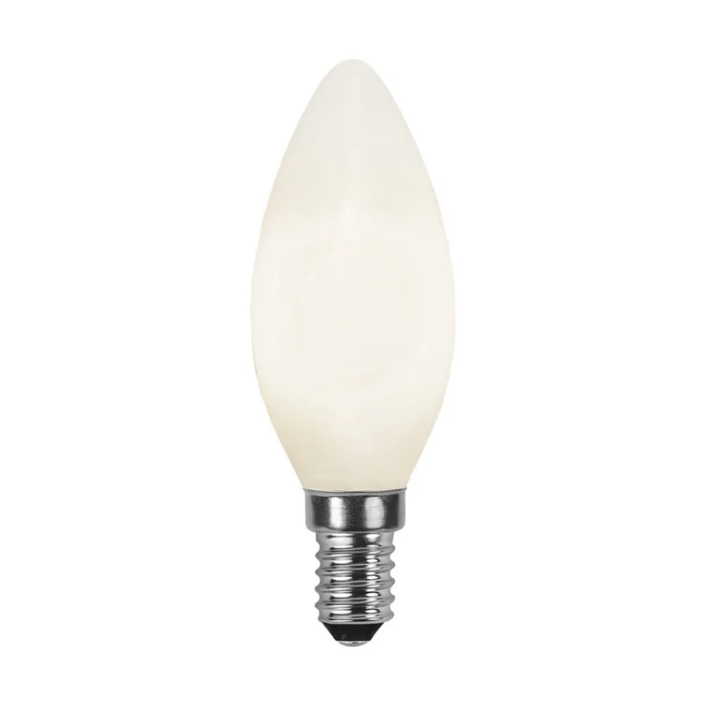 Et vakkert utseende med en opalhvit glasspære uten kjøleribbe gjør denne E14 LED-lyselampen til en lyskilde som kan brukes i alle slags lampeskjermer samt i lysekroner eller andre lampeformer uten skjerm . Spesielt bemerkelsesverdig er den meget gode fargegjengivelse til lampen, som har en fargegjengivelsesindeks på Ra90.