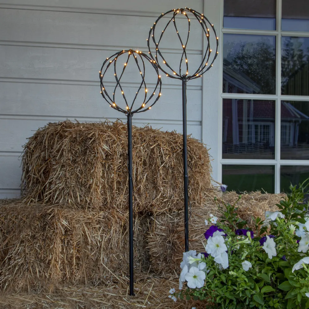 Sphere LED-lampe med jordspyd, svart, metall, sett med 2 stk