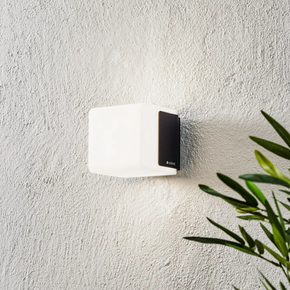 Moderne lyskube – utendørs LED-vegglampe L 835 C uten sensor, kan kobles til andre lamper via Bluetooth Utendørs LED-vegglampe L 835 C er en attraktiv armatur som utstråler modernitet og enkelhet med sin kubiske form. Enten det er i inngangspartiet eller langs fasaden, lyser det varmhvite lyset opp mørket på en pålitelig måte. Selve utelampen har ingen sensor, men kan kobles trådløst til andre Steinel-lamper via Bluetooth. Hvis en sensorlampe er inkludert, starter alle lysene automatisk så snart en bevegelse registreres. I en enkelt installasjon betjenes lyset via en liten bryter – Dimbar via Steinel Connect-appen