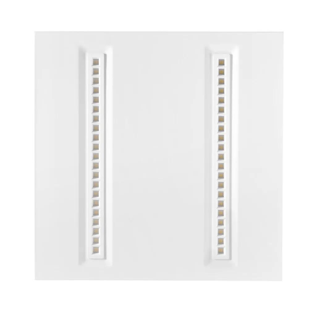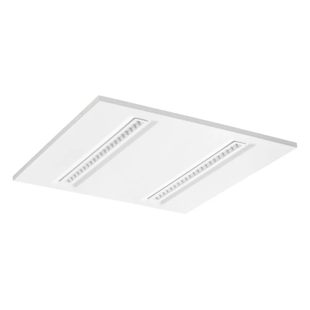 LED innfelt panel Opiclip 625 4000 K – DALI-dimbar Det hvite, dimbare, innfelte LED-panelet Opticlip 625 er ideelt for kontorer eller undervisningslokaler takket være sin svært effektive og blendingsfrie belysning. Det er egnet for standard rasterloft og har hvit plastoptikk for direkte lysfordeling – Dimbar (DALI) – Husfarge hvit RAL 9016 – Slagfasthet IK07 – Blendingsverdi UGR <17