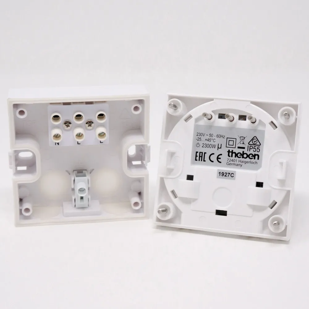 TheLuxa R180 bevegelsessensor har en robust husdesign og er beskyttet mot manipulasjon. Det skjulte arrangementet av kontrollene under den sikrede frontdekselet bidrar også til dette. Sensoren plasseres på veggen i en høyde på 2,5 m. Den kan også monteres under gips. Funksjonene er forhåndsinnstilt slik at ingenting står i veien for umiddelbar oppstart. Deteksjonsområdet kan begrenses ved hjelp av den medfølgende dekkklemmen. Inkludert blindklemme for beskyttelsesleder.