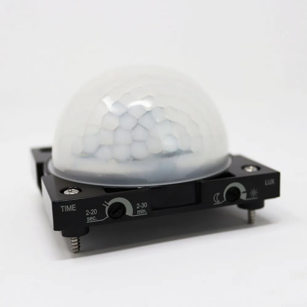 TheLuxa R180 bevegelsessensor har en robust husdesign og er beskyttet mot manipulasjon. Det skjulte arrangementet av kontrollene under den sikrede frontdekselet bidrar også til dette. Sensoren plasseres på veggen i en høyde på 2,5 m. Den kan også monteres under gips. Funksjonene er forhåndsinnstilt slik at ingenting står i veien for umiddelbar oppstart. Deteksjonsområdet kan begrenses ved hjelp av den medfølgende dekkklemmen. Inkludert blindklemme for beskyttelsesleder.