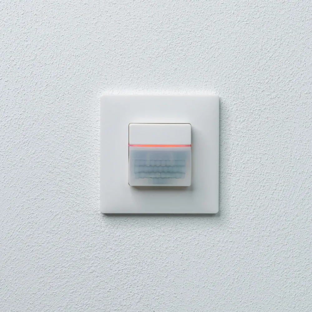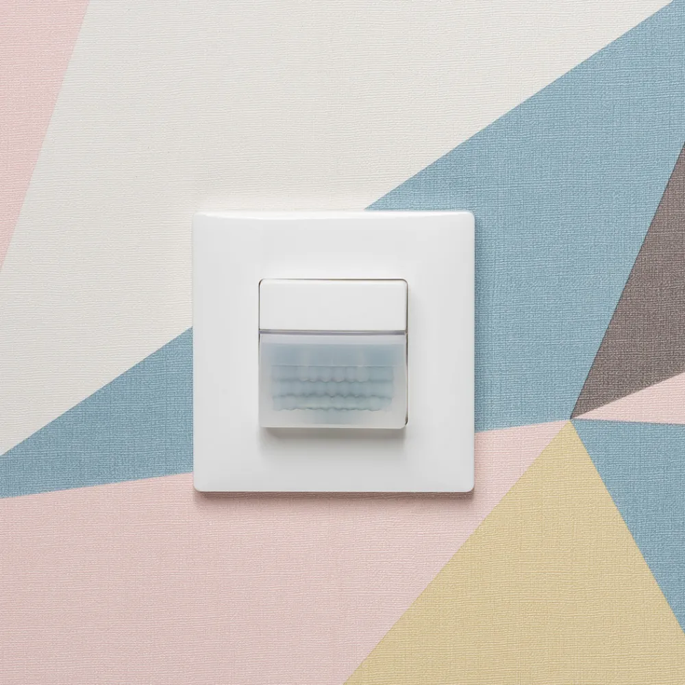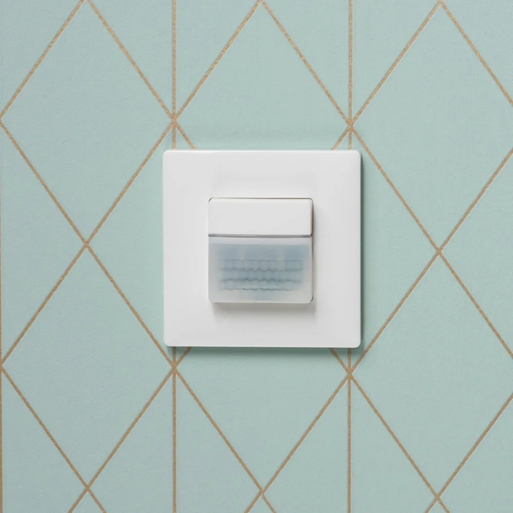 Den passive infrarøde bevegelsessensor er ideell for automatisk belysningskontroll avhengig av bevegelse og lysstyrke. Den integrerte knappen kan deaktiveres.