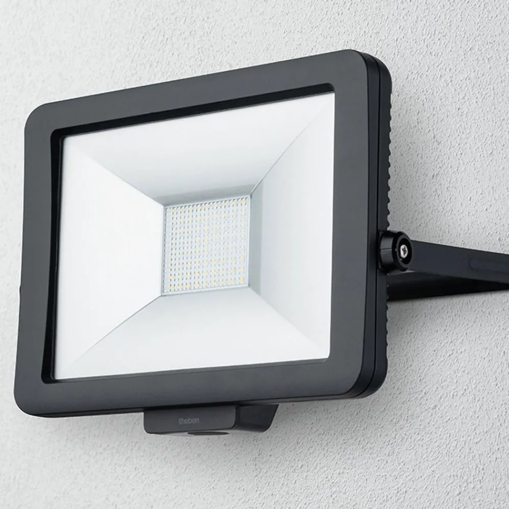 theLeda B50L – svingbar LED-spotlight for utendørsarealer LED-spotlighten theLeda B50L er utstyrt med universelle hvite lysdioder med høy lysstyrke, noe som gjør denne funksjonelle lyskilden ideell for et bredt spekter av belysningsalternativer på eiendommen. Vertikal dreining i 360 grader gjør det mulig å tilpasse lysretningen. Takket være kapslingsgrad IP65 (beskyttelse mot inntrengning av støv og vannstråler) er det ingen grenser for bruksområdene. theLeda B50L kan også utstyres med en bevegelsesdetektormodul med eller uten fjernkontroll eller med en lyssensor (kan bestilles separat som tilbehør) ved behov. – Egnet for tak- eller veggmontering – Omgivelsestemperatur: – 20 °C til + 40 °C