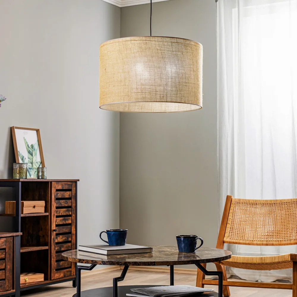 Hengelampen Juta kombinerer naturlige materialer som jute, plast og metall til et harmonisk design som skaper en varm og innbydende atmosfære i alle rom. Med en diameter på 50 cm er den et blikkfang i stuer, spisestuer eller soverom og passer perfekt inn i forskjellige innredningsstiler. Kombinasjonen av brune og svarte fargetoner gir lampen en tidløs eleganse som passer både i moderne og klassiske interiører.