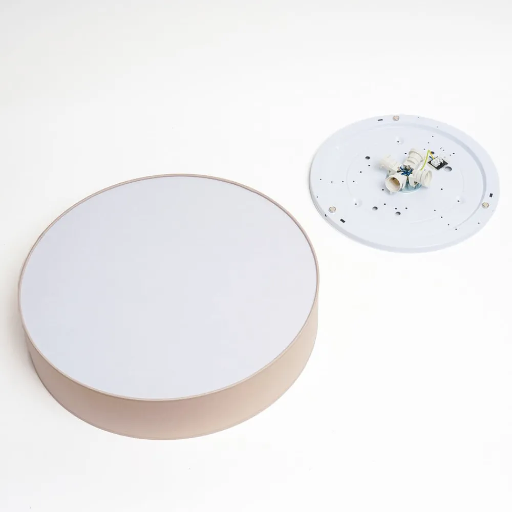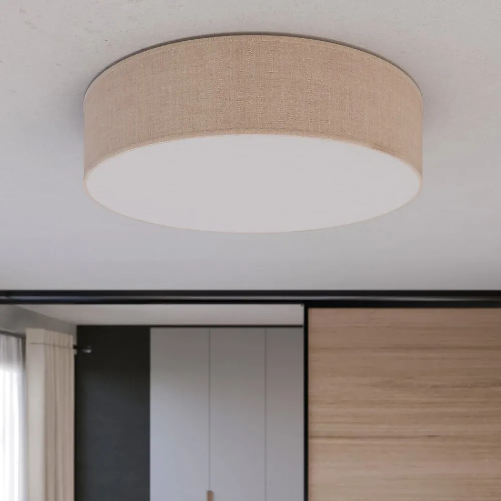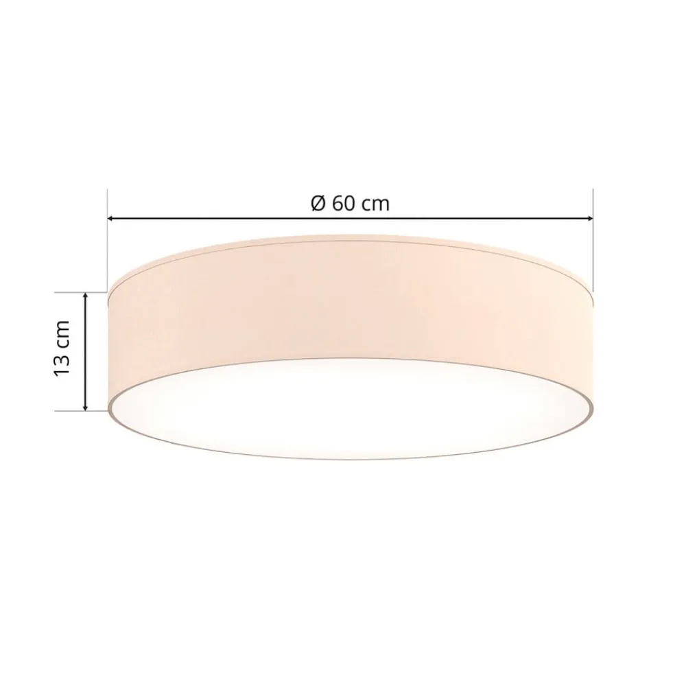 Taklampen Rondo i beige tekstil kombinerer tidløs design med funksjonell belysning. Den elegante tekstilskjermen sørger for jevn og myk lysfordeling, som gir ethvert rom en varm og innbydende atmosfære. Den diskrete fargen i beige passer perfekt inn i ulike interiørstiler og er en allsidig løsning for belysning i stuer og soverom.
